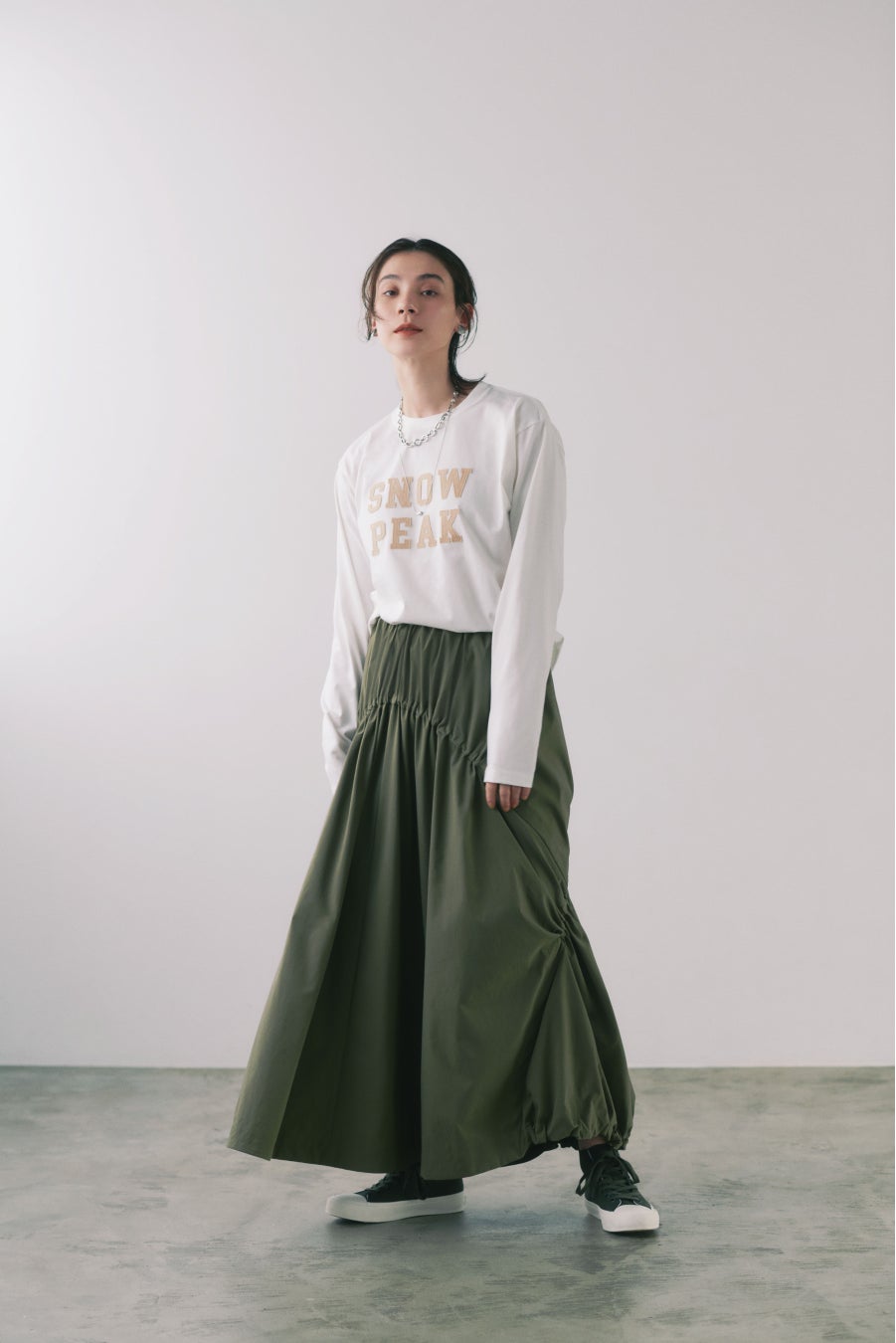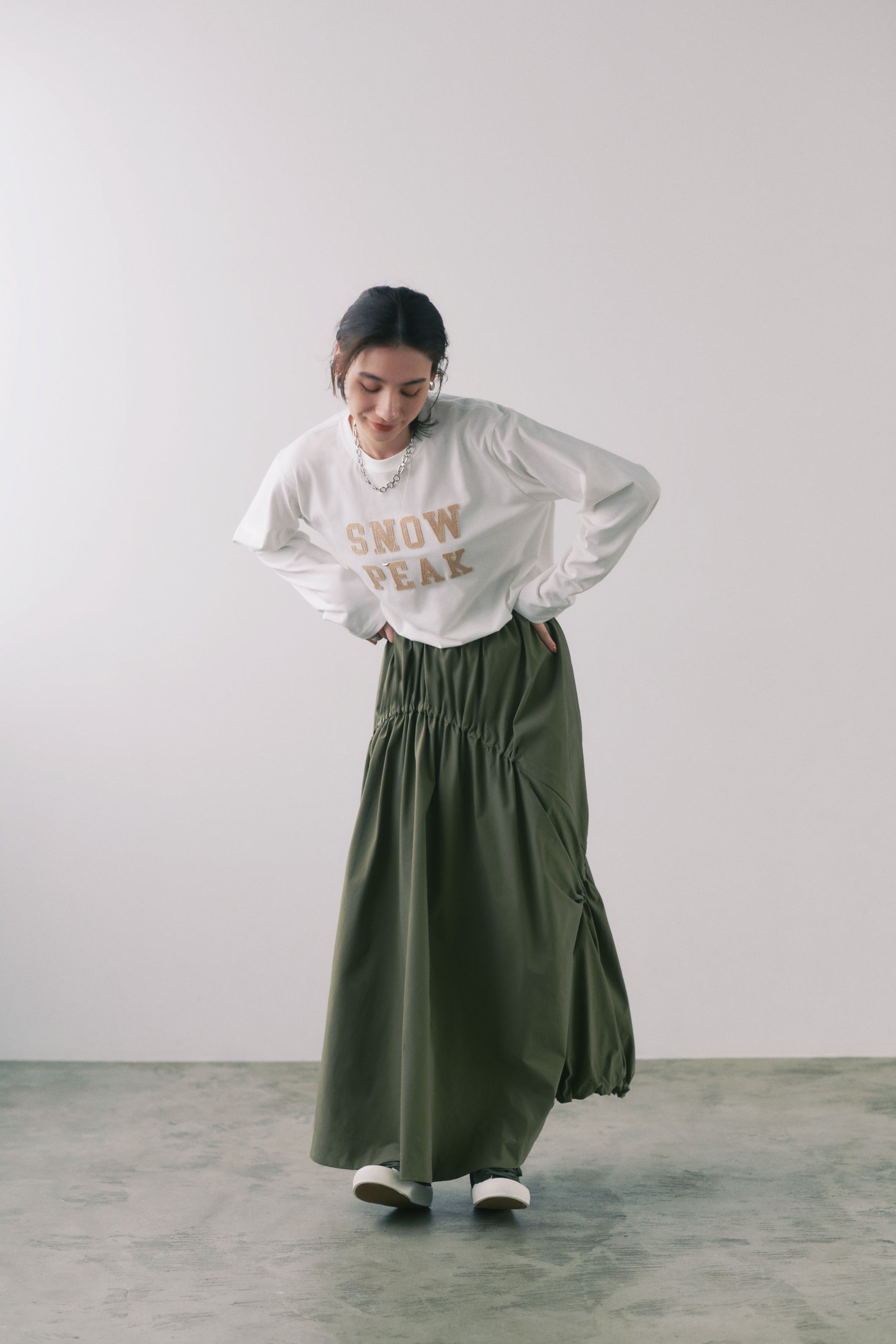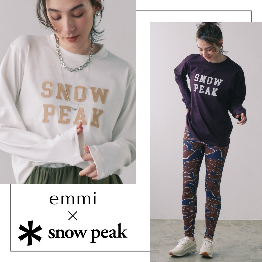 【emmi(エミ)】Snow Peakとの大人気コラボレーションの新作が登場!カレッジライクなロンTをクラシカルな秋色で別注