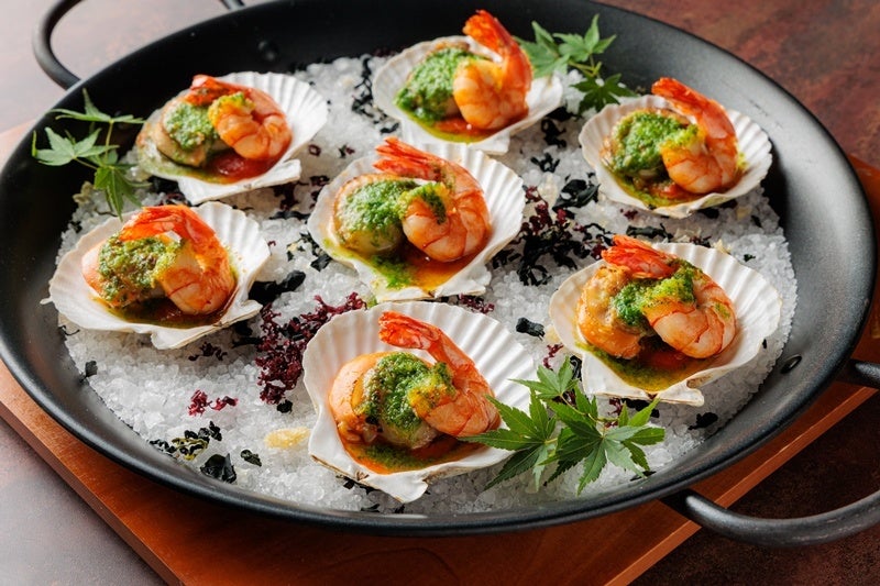 帆立貝と海老の海鮮焼き ブルギニョン風(ディナー限定)など
