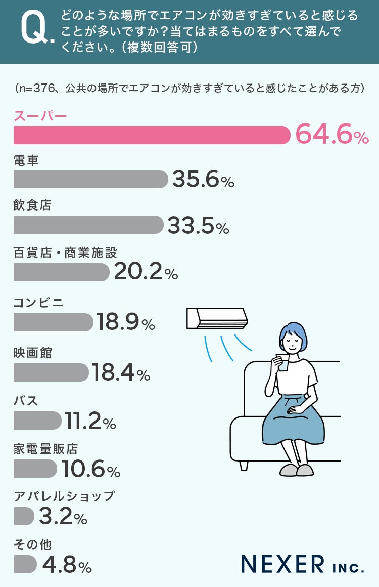 【空調効きすぎ!特に感じる場所は?】64.6%が「スーパー」と回答しもっとも多い結果に