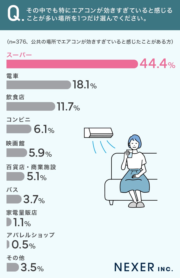 特に「スーパー」で冷えすぎを感じたことがあるという回答が6割以上を占め、多くの人が公共の空間での温度設定に敏感であることがわかりました。