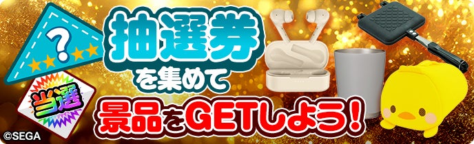 期間中に対象ゲームをプレイすると結果に応じて「イベントPt」を獲得!イベントPtを規定数獲得するとSEGAグッズをはじめとしたさまざまな景品が当たる「抽選券」や「コイン」が貰えます。
