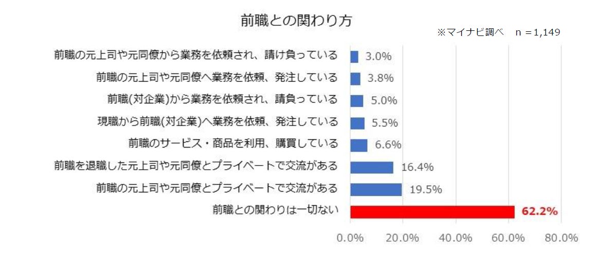しかし、「関わりは一切ない」と回答した人も「新規採用ポジションの情報を受ける」「OB・OGと交流する」「前職から業務の発注を受ける」といった関わり方次第で、今後の関係構築を前向きに考えていることが分かりました。