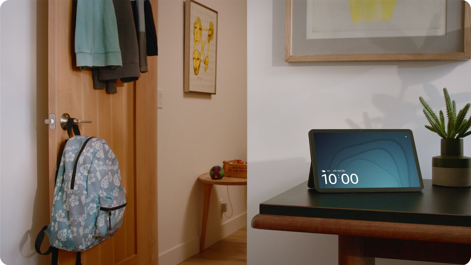 Alexaでハンズフリー操作:Alexaに話しかけるだけで、音楽の再生や*5一時停止、なぞなぞやしりとり、お気に入りの映画の検索、天気やカレンダーの表示、友人や家族への呼びかけなど、ハンズフリーで簡単に操作できます*6。また、画面上部より設定画面をスワイプし、Showモード切り替えスイッチをタップすることで、視覚体験が可能になり、11インチのスクリーン付きスマートディスプレイのようにご利用いただくことも可能です。