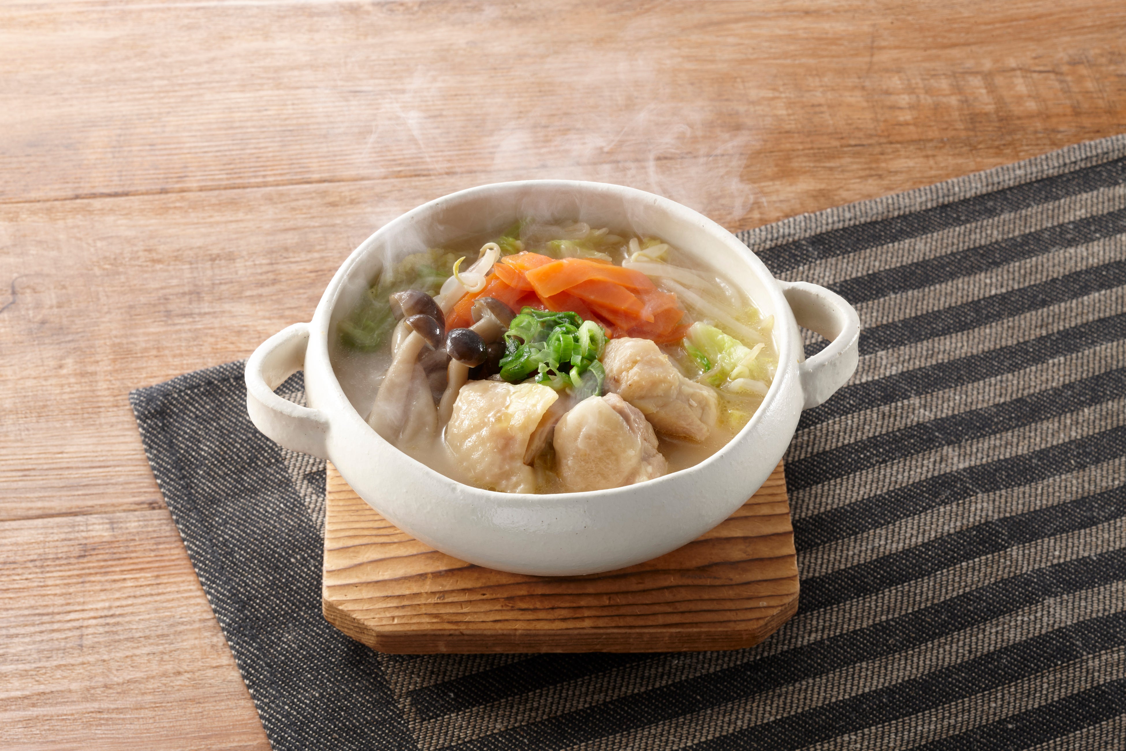 濃厚な鶏白湯スープに、100年以上の歴史を誇る老舗旅館「加賀屋総料理長監修白だし」を合わせたひとり用の白湯鍋です。白だしの上品な旨味が鶏白湯の濃厚さにほどよく溶け込み、具材の旨味と合わさることで、まろやかで深みのある味わいに仕上がります。