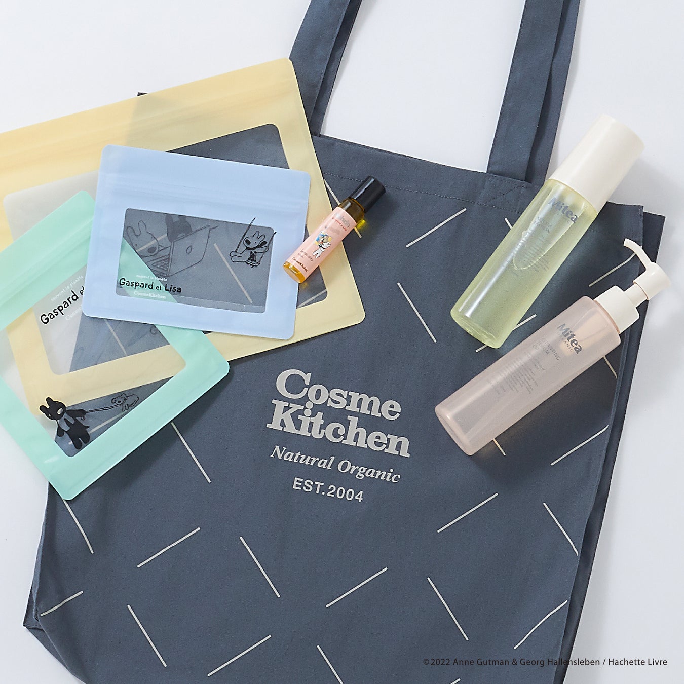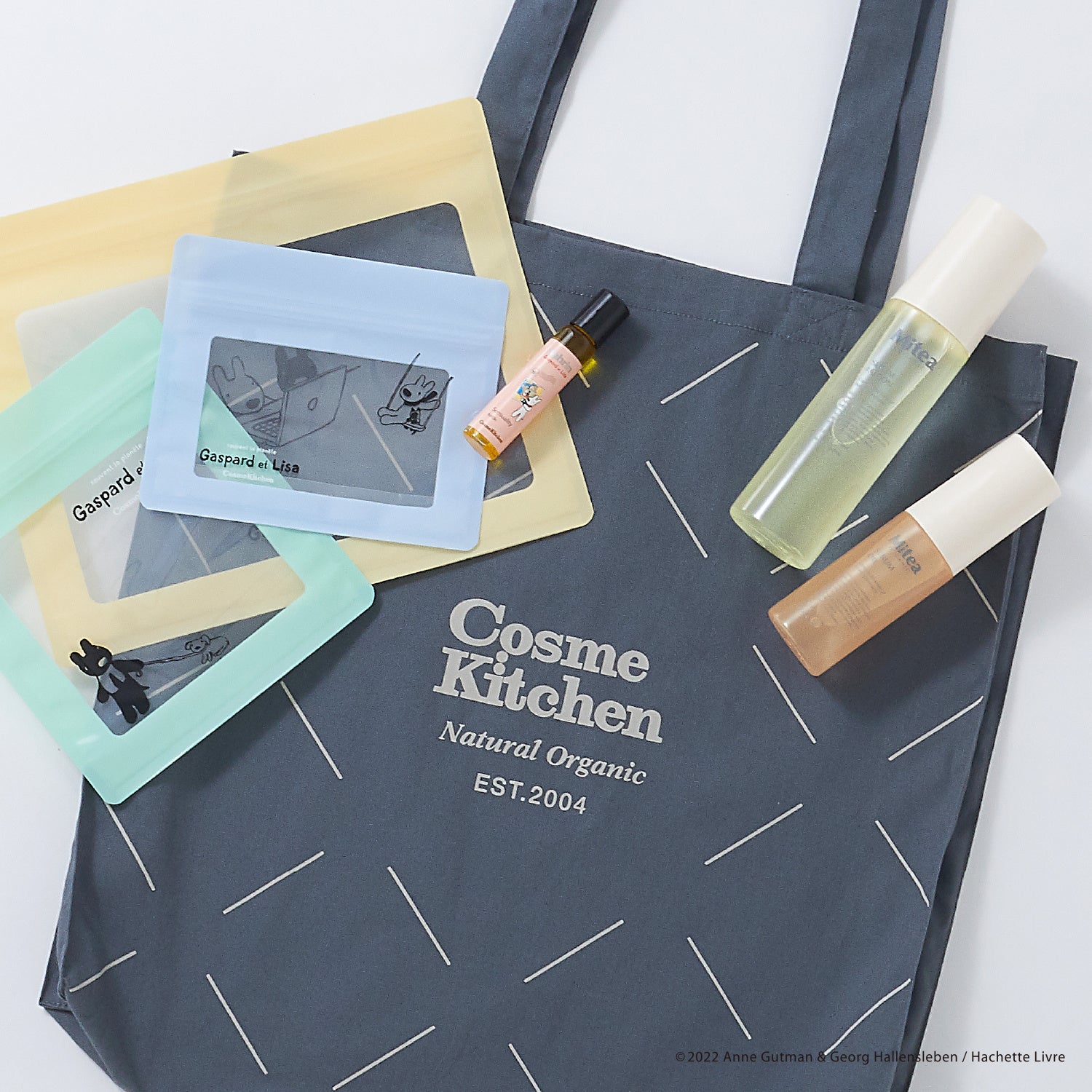 はじめてのオーガニックスキンケアにぴったりのアイテムに、コスメキッチンで大好評の『リサとガスパール』コラボレーションパッケージの「ナリン センシュアル ロールオン」と「サステナポーチZIP」、大容量で使い勝手抜群の「コスメキッチン オリジナルトートバッグ」がお得なセットに。