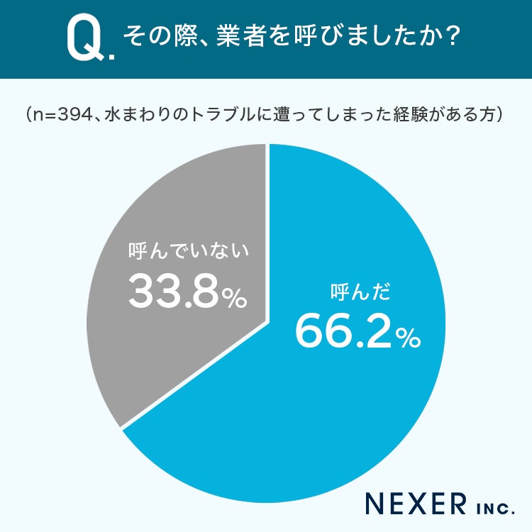 さらに水まわりのトラブルに遭ってしまった経験がある方に、その際に業者を呼んだかどうか聞いてみました。