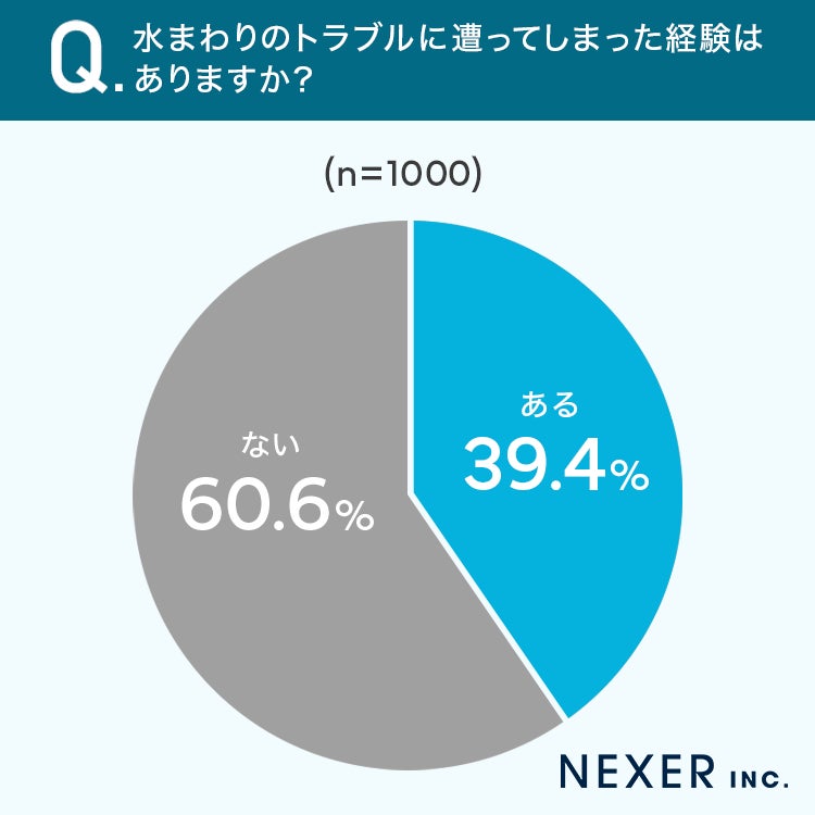 約4割の方が、水まわりのトラブルに遭ってしまった経験が「ある」と回答しています。