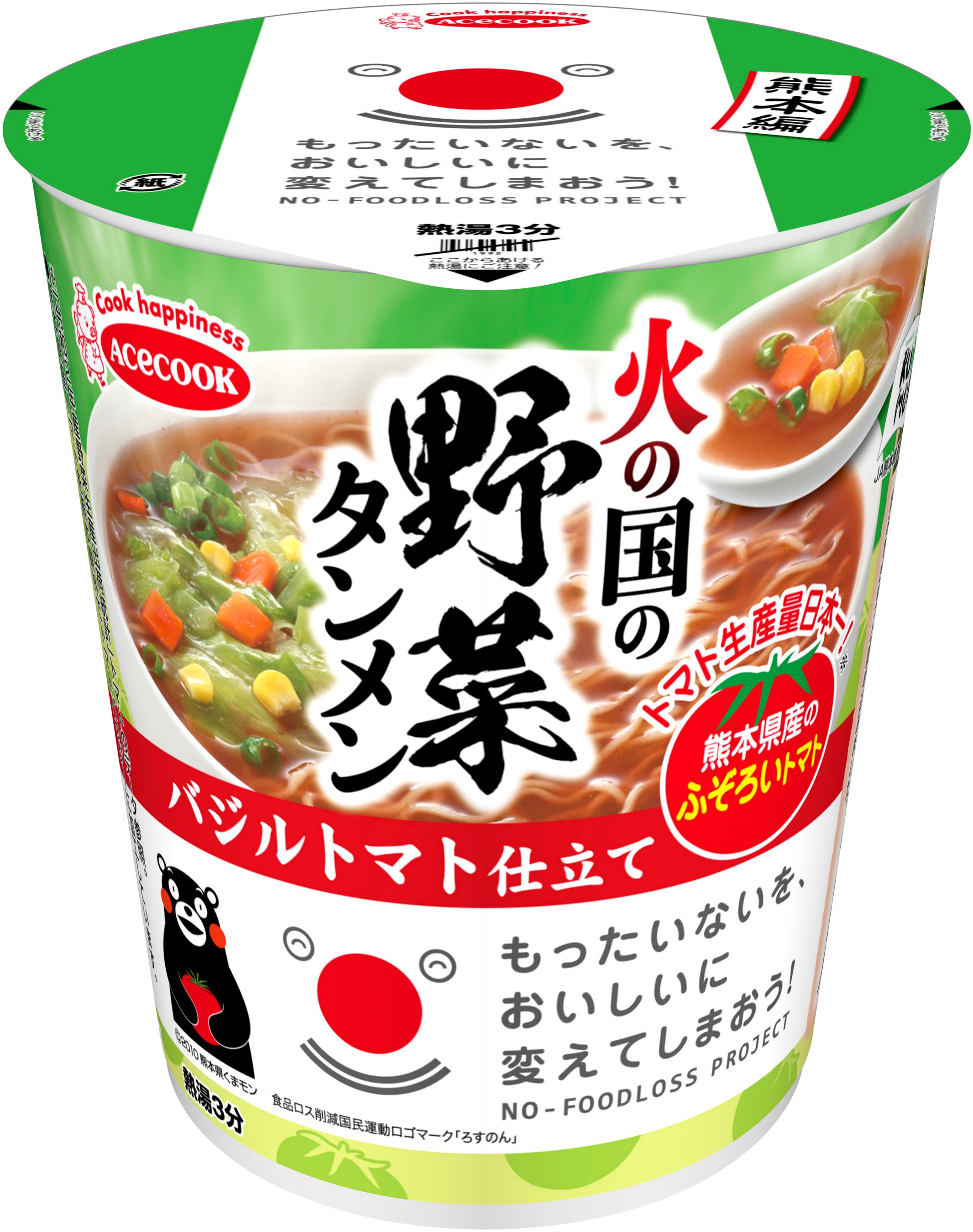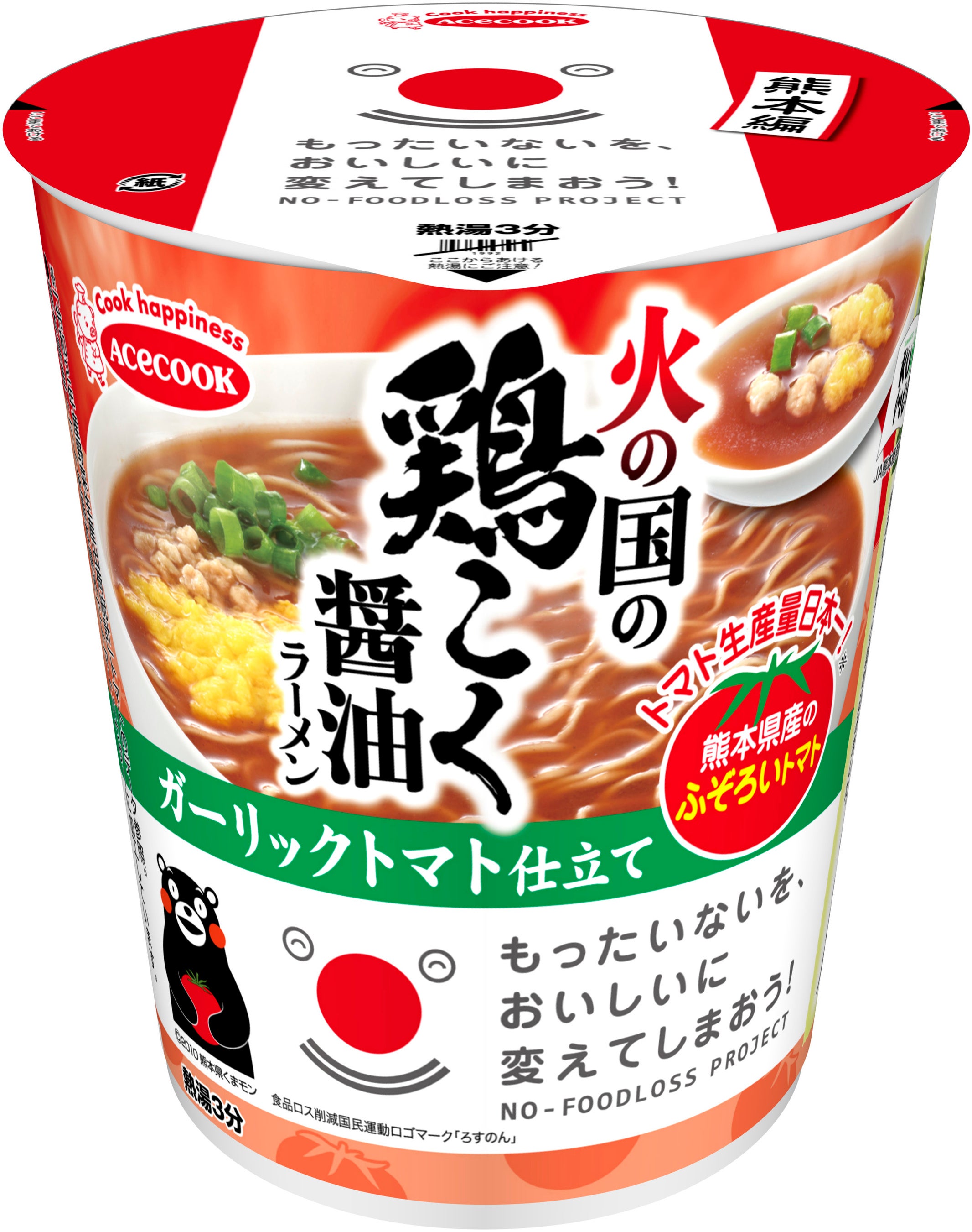 エースコック株式会社(本社:大阪府吹田市 社長:村岡寛)は、2023年2月27日より、「もったいないをおいしいに 火の国の醤油ラーメン ガーリックトマト仕立て/火の国の野菜タンメン バジルトマト仕立て」を新発売します。