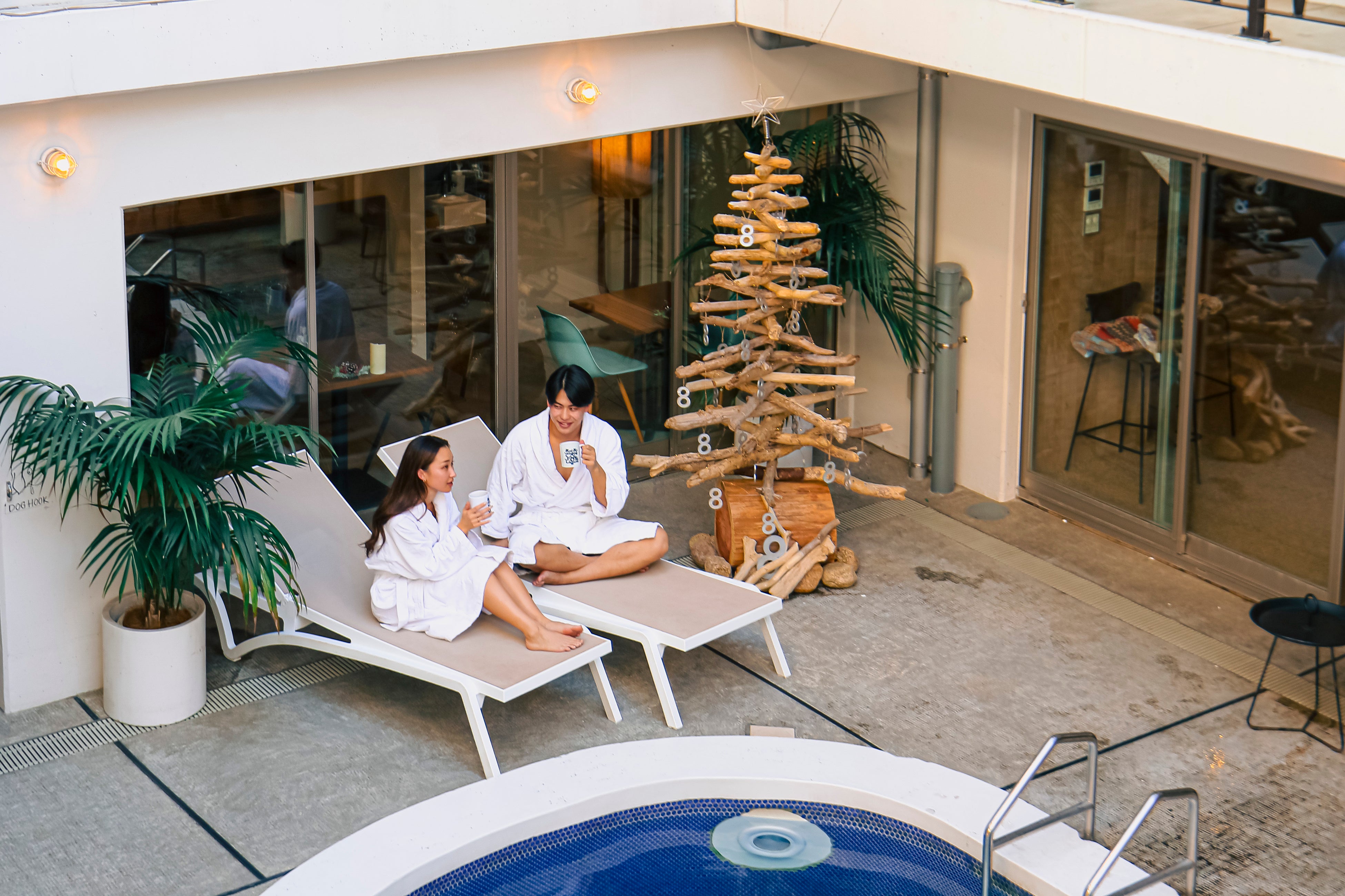 また、ホリデーシーズンを華やかに彩るクリスマスの装飾を館内各所に設置します。プールサイドには、スタッフが自ら集めた流木を使い制作した「流木クリスマスツリー」も建てられます。茅ヶ崎の海で拾われた流木を活用したツリーは、ホテルのコンセプトである“FEEL LOCAL“とSDGsの観点を取り入れた“8HOTELらしい冬の象徴”としてプールサイドを彩ります。