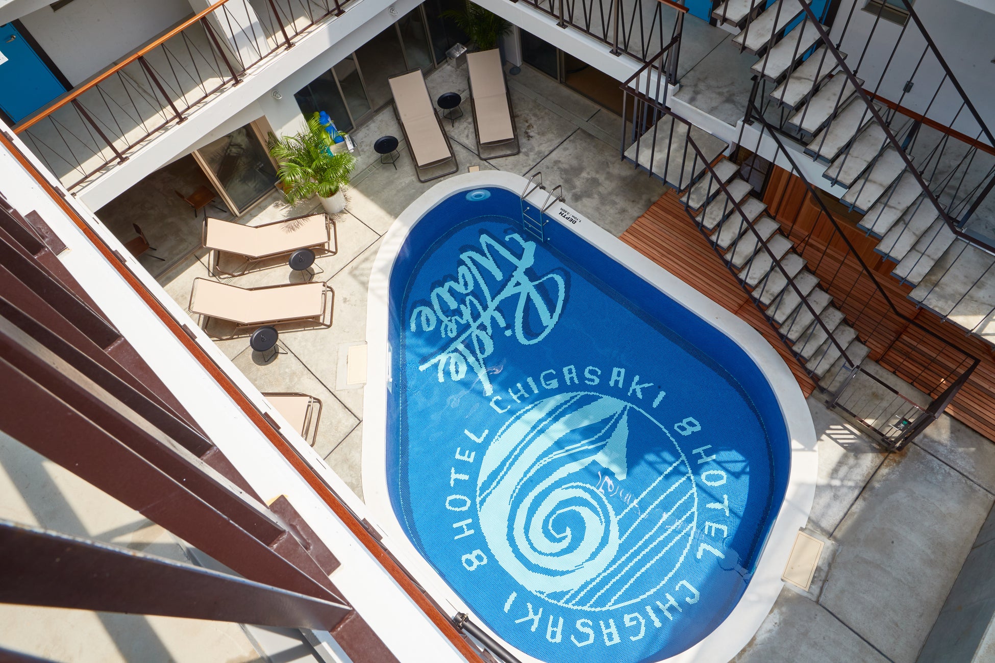 まるで海外にあるモーテルのような造りをした 8HOTEL CHIGASAKI。プールを囲うようにフロント、ラウンジ、サウナなど、非日常な空間が広がります。サウナやプールだけではなく、併設のラウンジで軽食を楽しんだり、ととのいスペースでゆっくり話したり、あなたらしく自由に寛ぎ、レイドバックな時間をお楽しみください。夜はライトアップで別の顔を見せ、ナイトプールとしてもお楽しみいただけます。