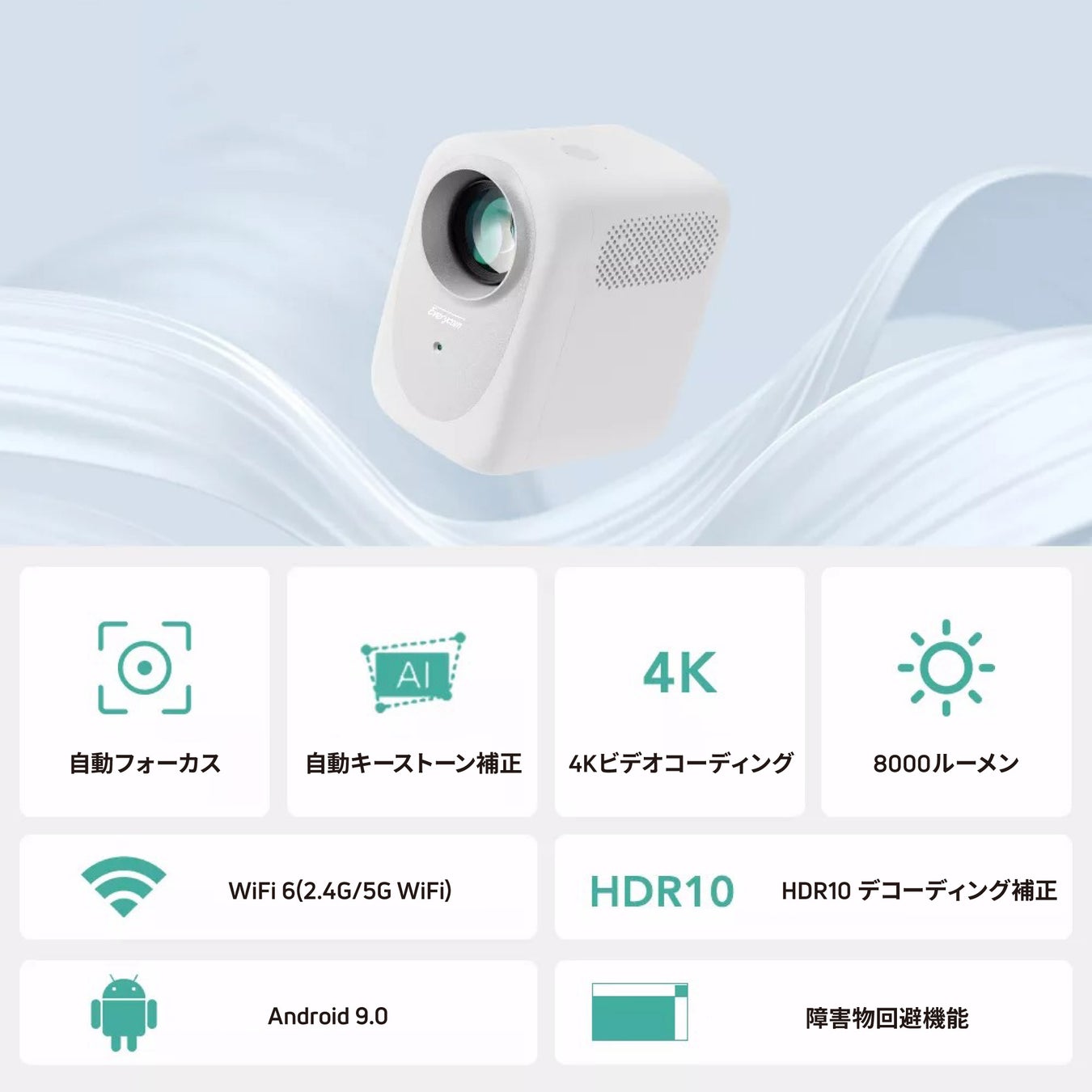 【1080P/明るい8000ルーメン/WiFi 6/Android 9.0内蔵/障害物回避/最大200インチ】