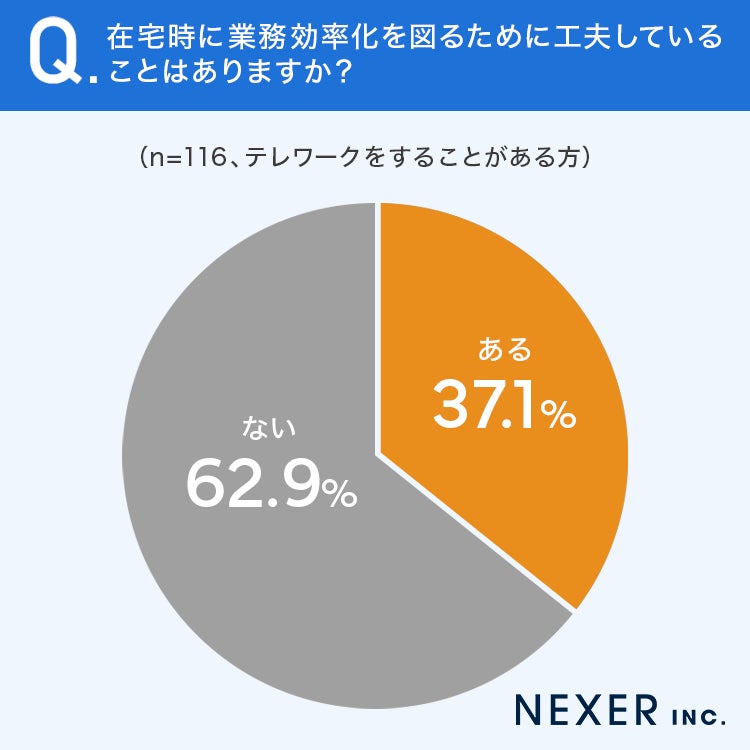 テレワークをすることがある方の37.1%が、在宅時の業務効率化を図るために工夫していることが「ある」と回答しています。