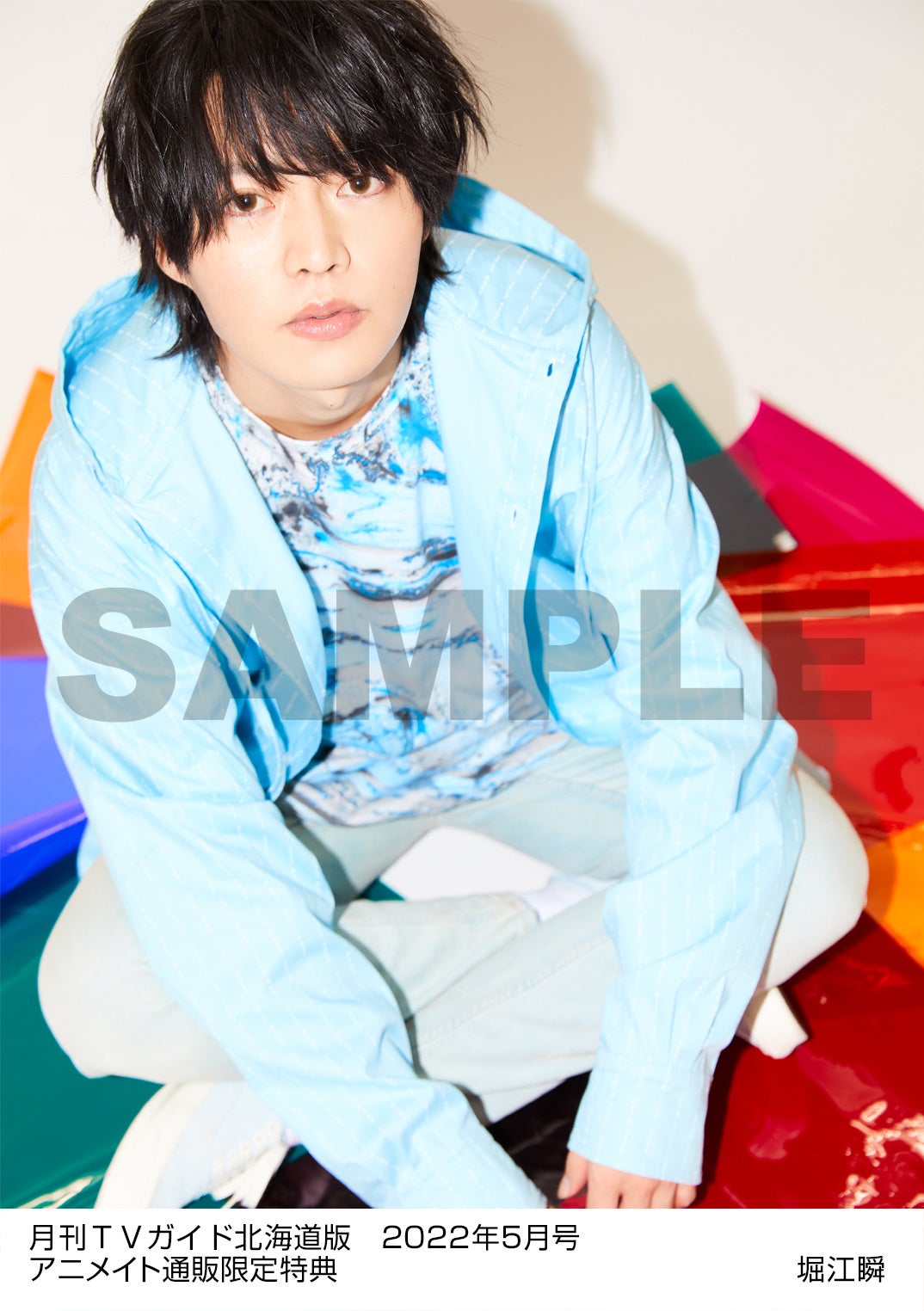 なおアニメイト通販で「月刊TVガイド2022年5月号」を購入すると、地域ごとに異なる6種の堀江瞬の生写真がプレゼントされる限定企画も。サッカー場の芝生に寝転んでいるかのようなナチュラルな姿や、ひょっこり顔を出すお茶目なポージング、さらにドキッとさせられるアンニュイな表情まで全6種。ぜひこの機会に入手していただきたい。