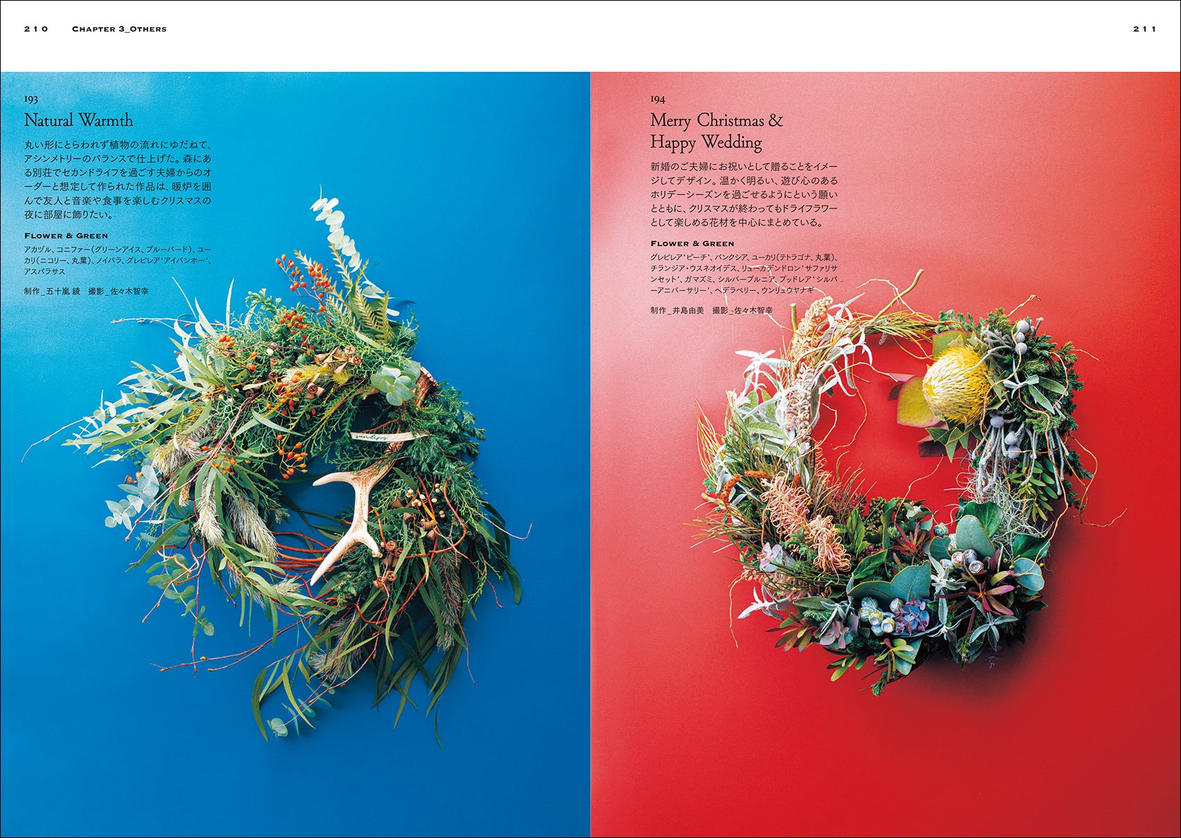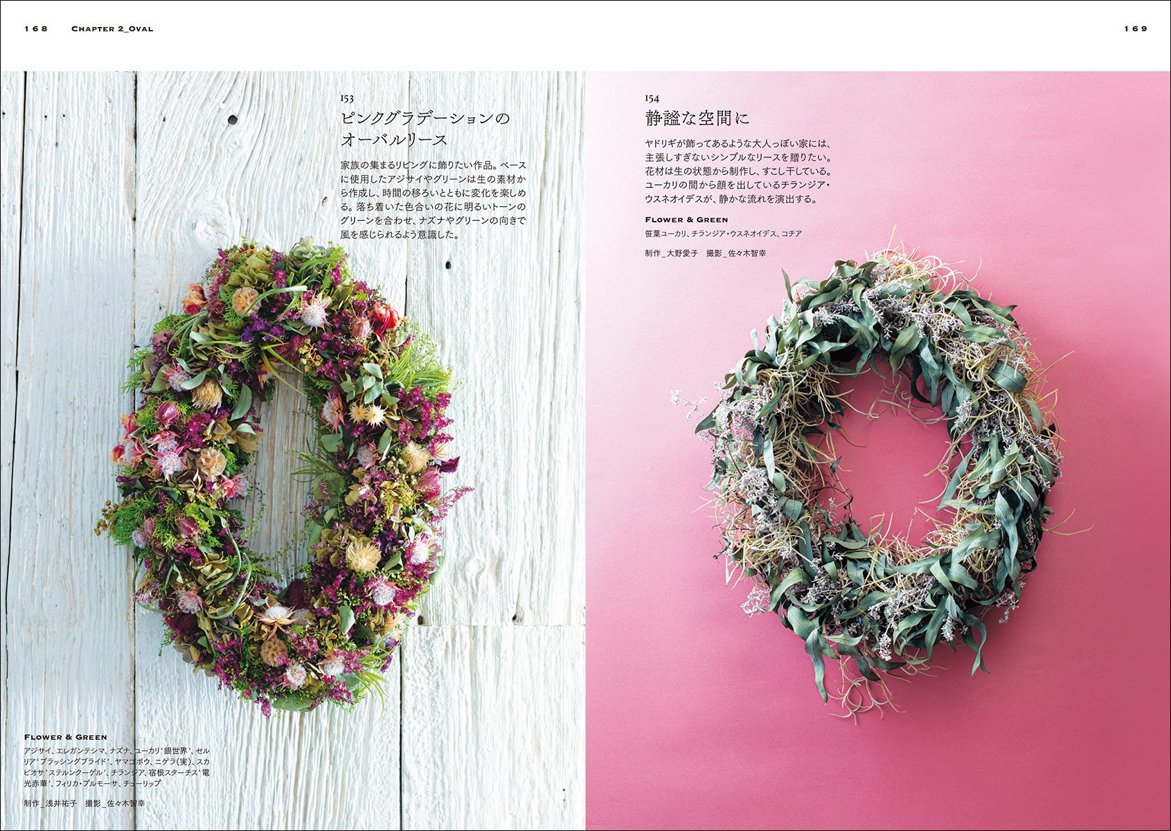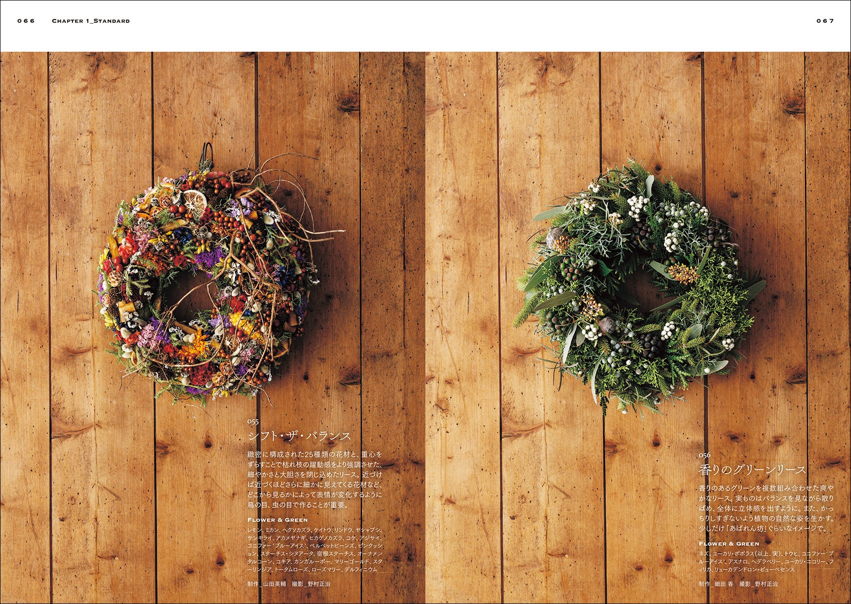 本書では、プロのフローリスト、フラワーデザイナーが制作したリース200点の作例を掲載。
