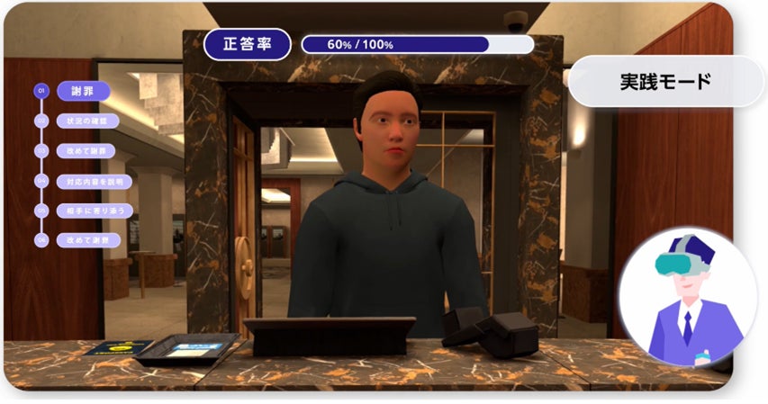 MasterVRは、営業や接客などの顧客対応を圧倒的な臨場感の中で一人で学べる教育ツールです。お客様との会話内容は自由にカスタマイズ。AIにフィードバックさせることができます。「案件化/受注率の伸び悩み」にお困りではありませんか? 紙や動画の教材では「社員がしっかり学べているのか分からない」という悩みはありませんか?教育に手が回らず、「現場で問題が起きる」、「離職率が高い」という悩みはありませんか? MasterVRなら、基本の徹底から、難易度の高い交渉シーン、クレーム対応まで、様々なシーンをVRで手軽に体験。忙しい管理職、失敗が怖い従業員のみなさまに使っていただきたい製品です。