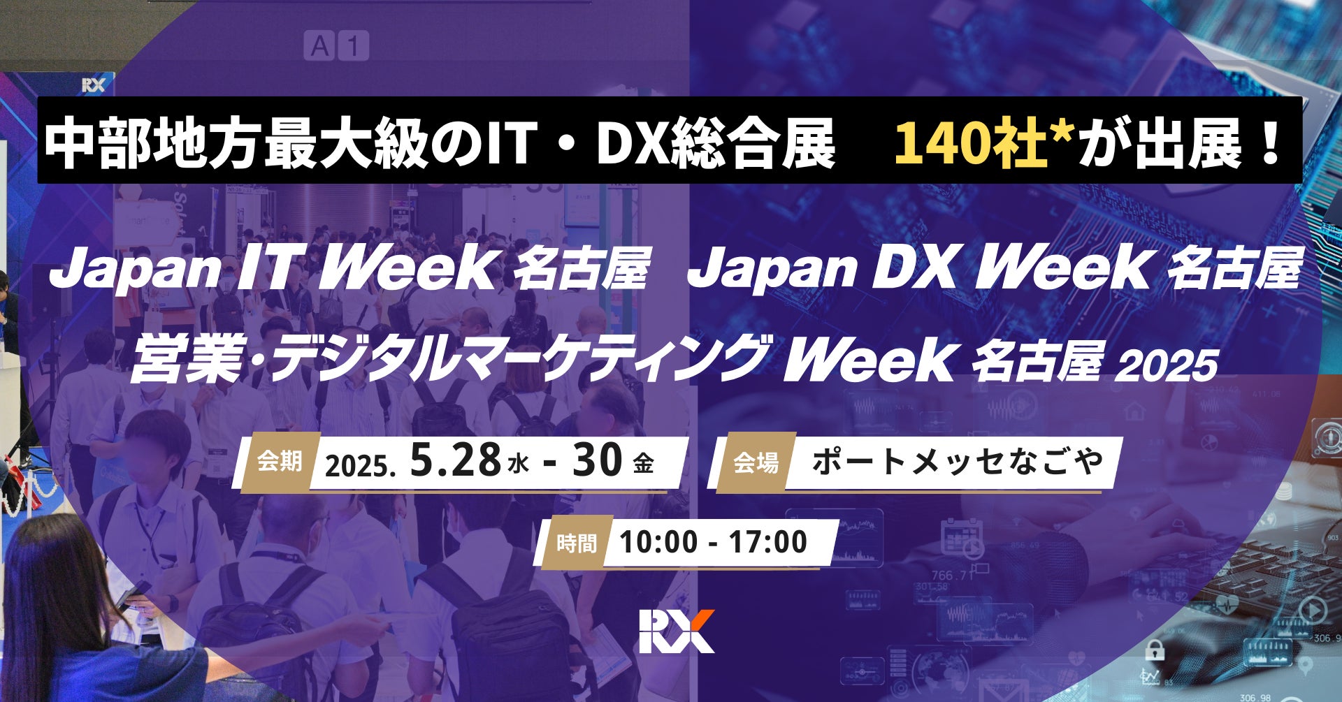 RX Japan株式会社(本社:東京都中央区、代表取締役社長:田中 岳志)は2025年5月28日(水)~30日(金)の3日間、Japan IT Week/Japan DX Week/営業・デジタルマーケティング Week 名古屋 をポートメッセなごやにて開催いたします。