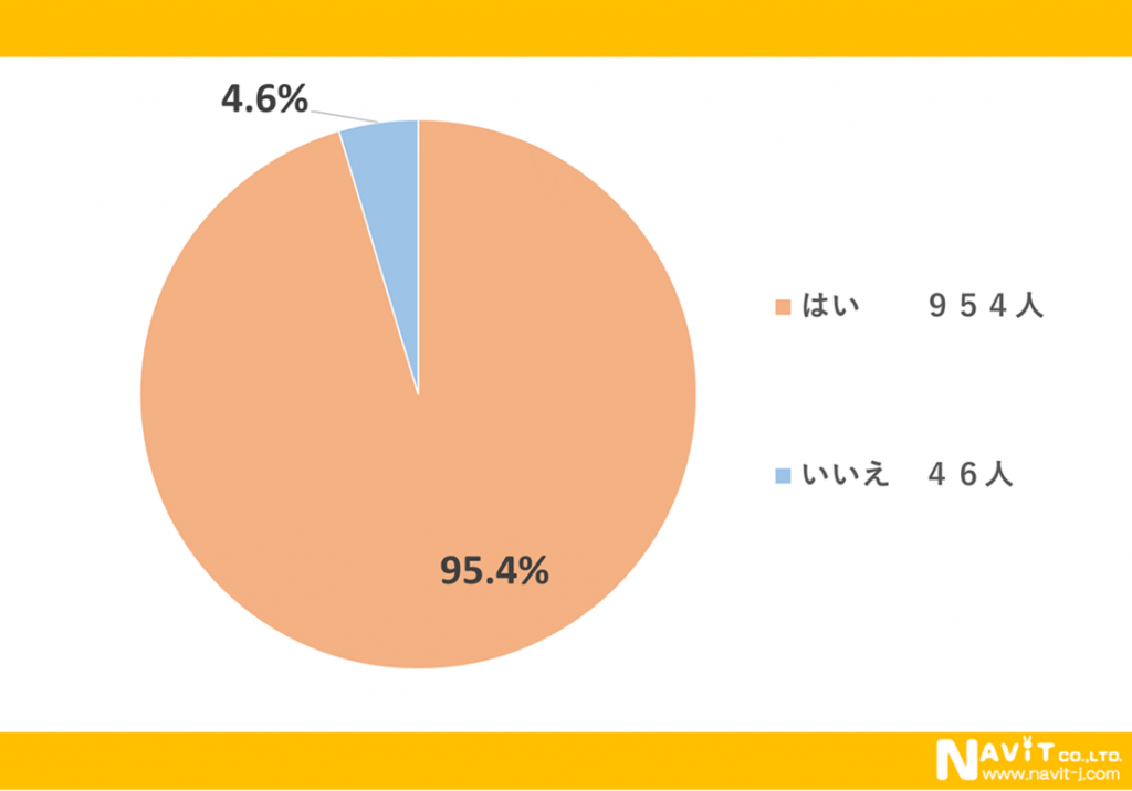 Youtubeで動画を視聴したことがあるかというアンケートに対して「はい」という回答が95.4%という回答になりました。ほとんどの人がYoutube視聴をしたことがあるということがわかります。