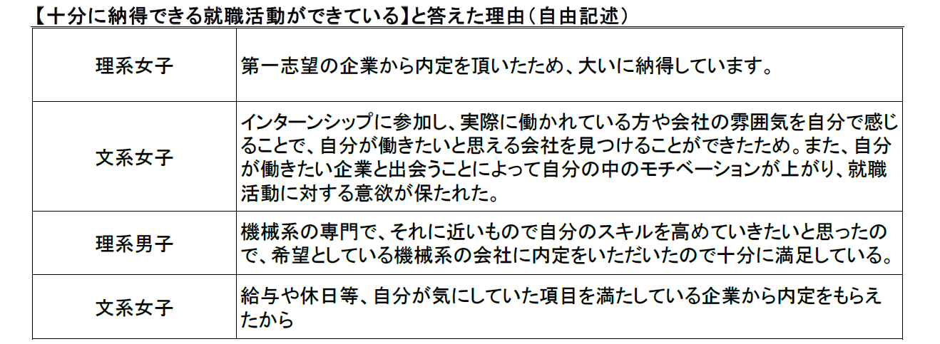 【図7】これまでの就職活動の「納得度」に対するコメント(自由回答/一部抜粋)