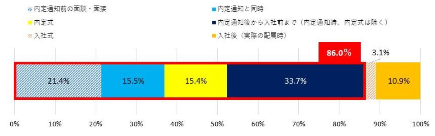 - 配属先を通知してほしいタイミングは「入社前」が8割以上【図4、5】