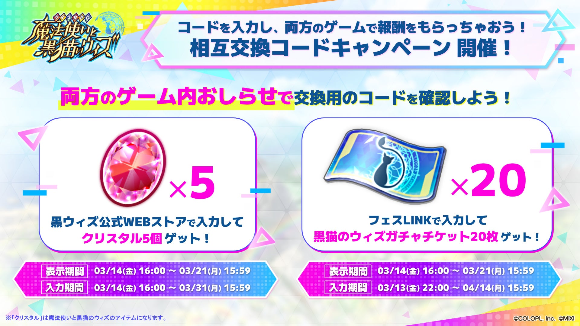また、「黒ウィズ公式WEBストア」にてコードを入力すると、クリスタル5個をもらえるキャンペーンも実施しております。