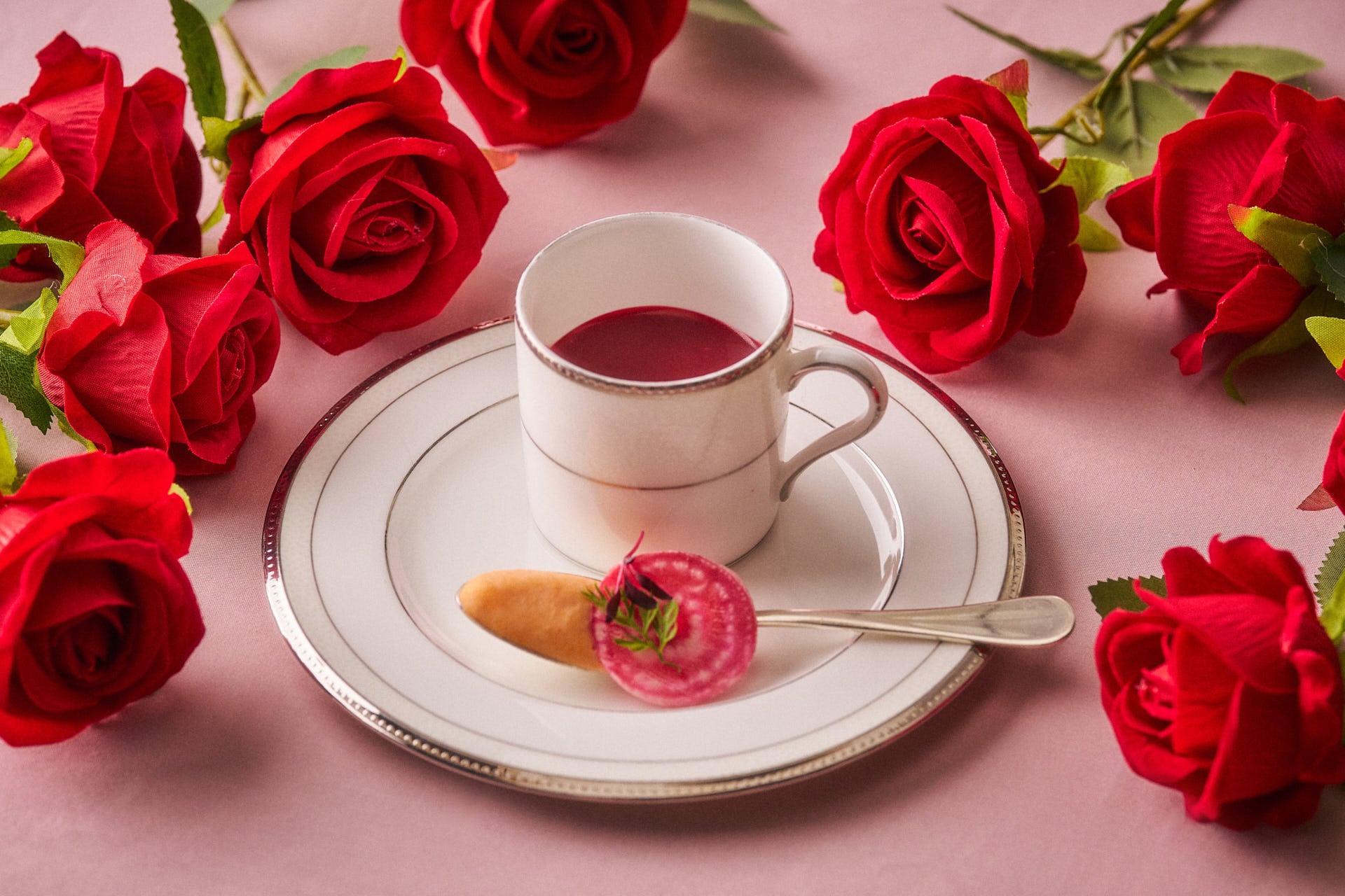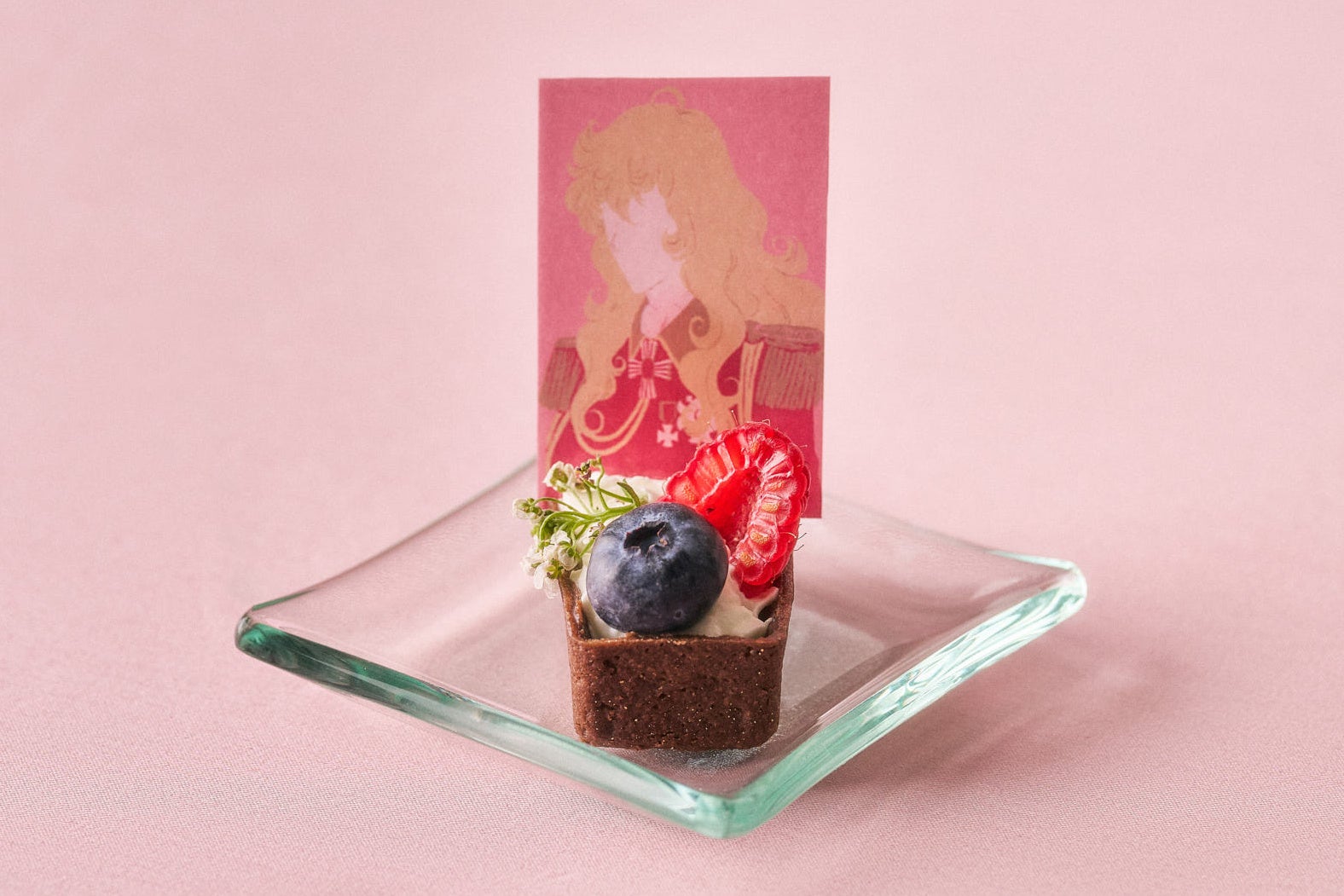 登場キャラクターを模したスイーツや、リボンやティアラなどをあしらったケーキなどに加え、フォアグラやオマールエビなどの食材を使用した まるで宮殿の食事を思わせるセイボリーが並び、『ベルサイユのばら』の世界観に浸っていただけるスペシャルな内容でご用意。