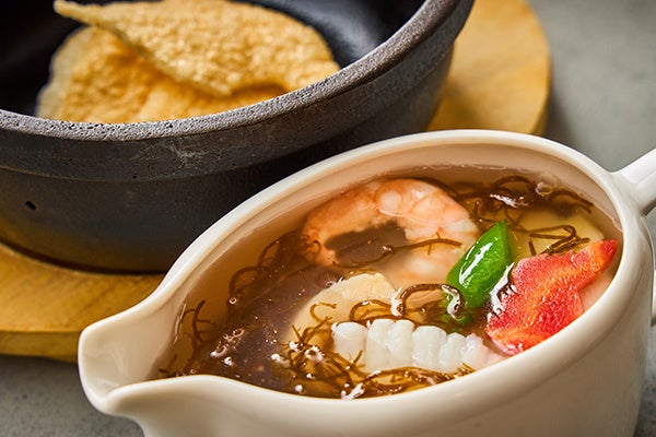 ◆干し貝柱とふかひれ姿煮入りスープ 桜風味