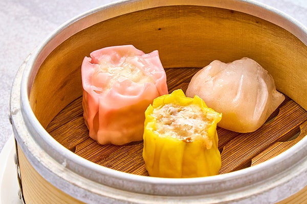 ◆蒸し物点心三種<桜色の魚焼売/桂林焼売/蒸し海老餃子>