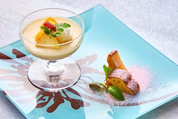 “ふかひれ姿煮入りスープ”は、じっくりと戻した干し貝柱から出る豊かな旨みと上品な味わいをご堪能ください。桜をイメージした淡い色の魚焼売は、ふわっと柔らかな食感をお楽しみいただけます。食後のデザートでは、口当たりも味わいも優しい白胡麻プリンと、ココナッツミルクの風味とコクを味わえるケーキをお召し上がりください。
