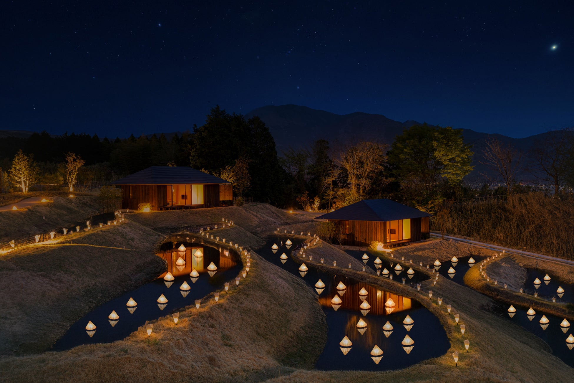 【界 由布院】100本の中津和傘が棚田を灯すライトアップが新登場「棚田冬灯りやつがい」開催