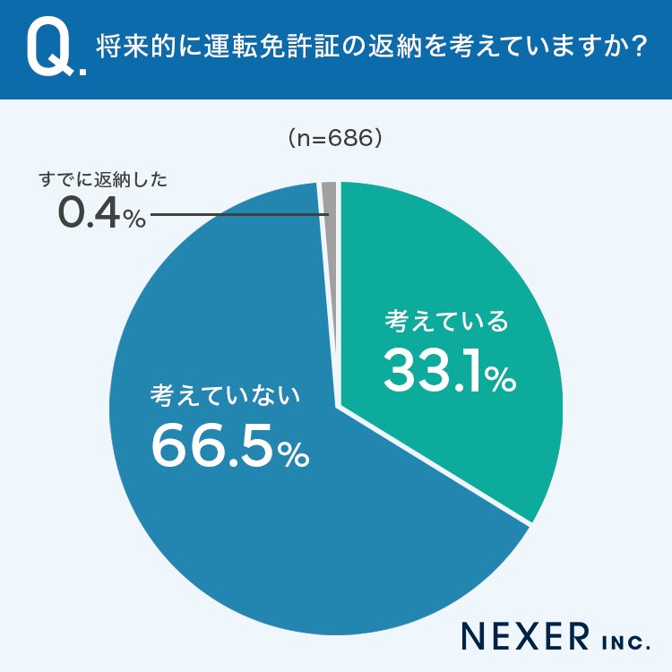 【免許証返納考えてますか?】33.1%が、将来的に運転免許証の返納を「考えている」