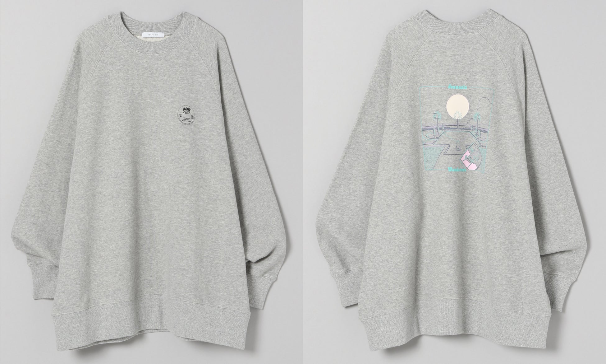 夜のプールがモチーフのジャケットデザインは、お部屋に飾りたくなるおしゃれさで、スウェットにも同じデザインを採用しました。また、スウェットをご購入いただいたお客さま限定で、レコードA面の「TENDER IS THE NIGHT」がダウンロードできるQRコードの特典が付きます。ラグマットはレコード盤と同じデザインでインテリアのアクセントとして大活躍間違いなし。JEANASISと一緒にこの秋もファッションだけでなライフスタイルをお楽しみください。