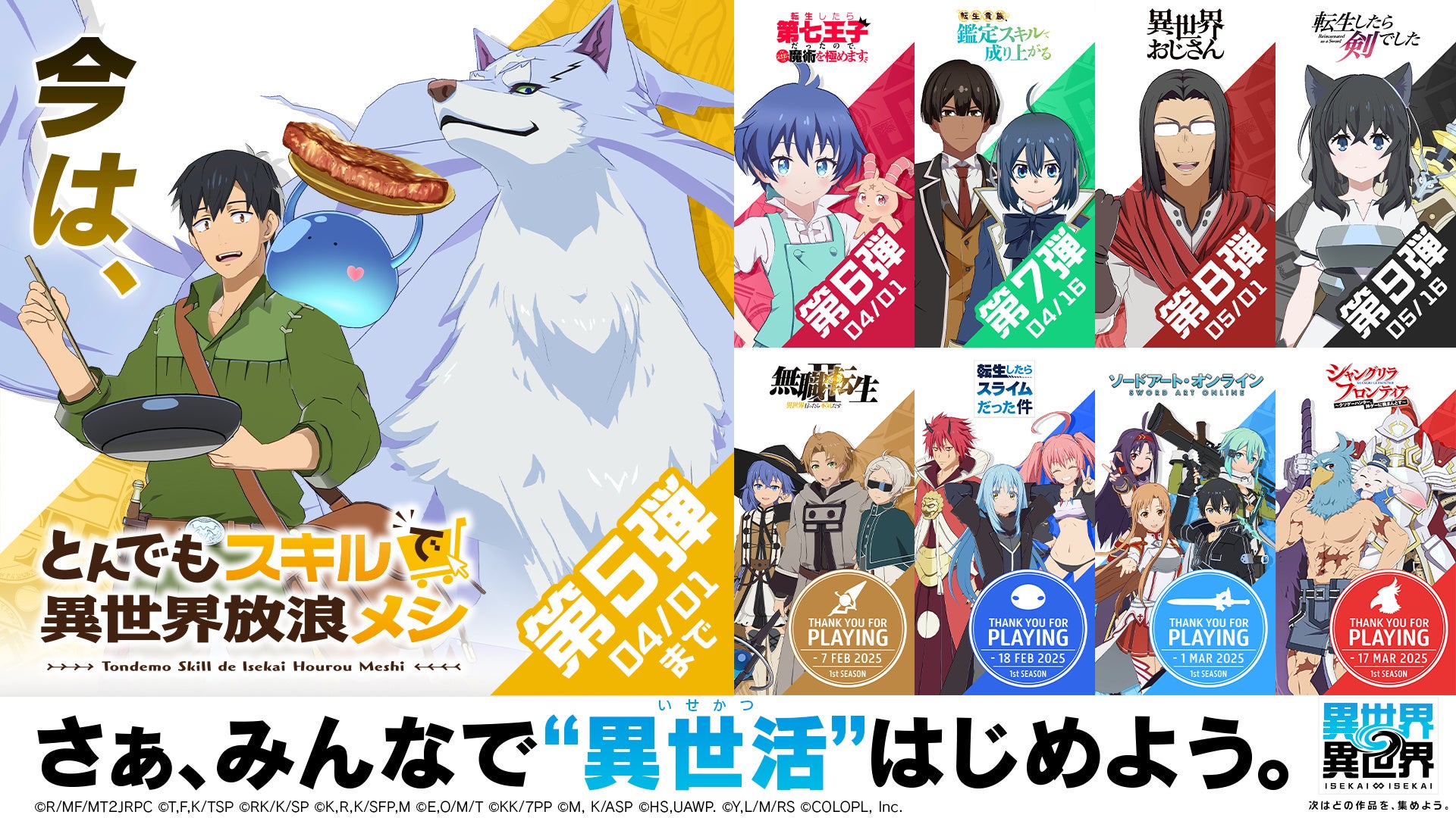 本日2025年3月17日(月)より「1stシーズン」第5弾として、人気アニメ作品「とんでもスキルで異世界放浪メシ」とキャラクターたちが本作に登場しております。