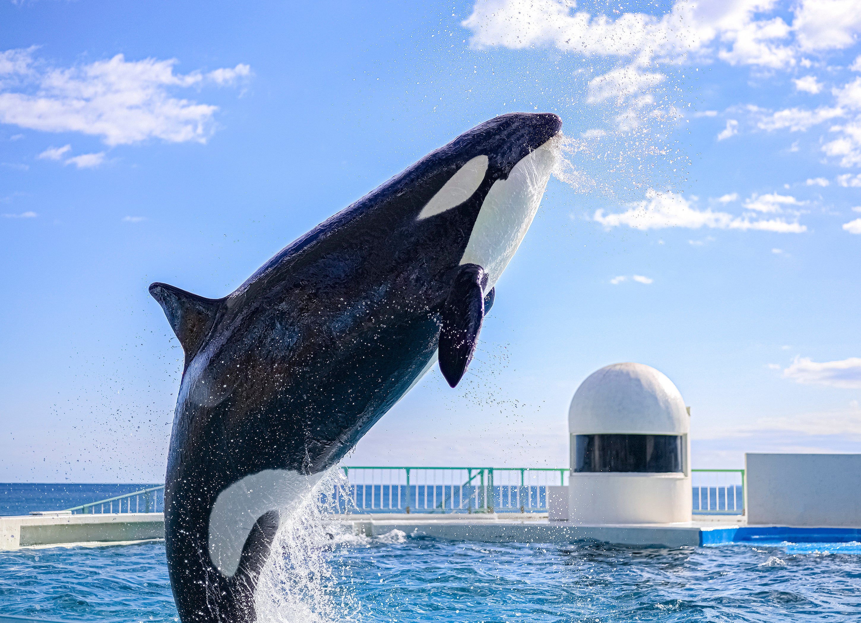 東日本で唯一シャチが泳ぐ姿を眺めながら