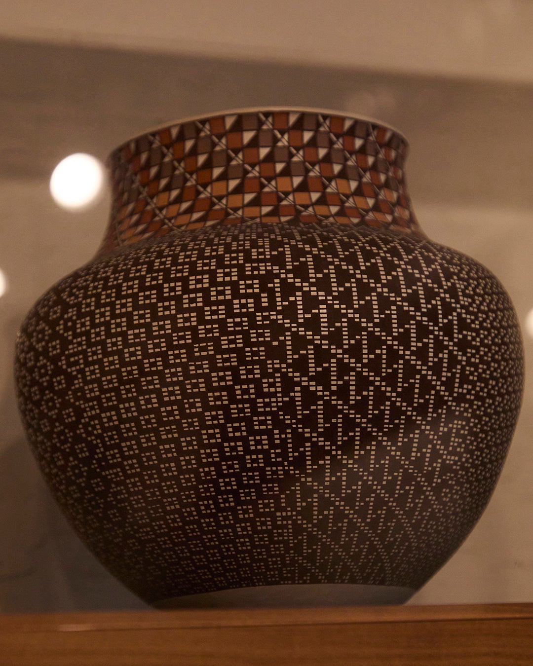 併せて展示するアーカイブ作品は、ナバホ族が手織りしたビンテージのラグやポッタリー(陶器)などで、一部、ご購入もいただけます。ラグは現代のライフスタイルに合わせて大小さまざまに、厳選されたものが揃います。