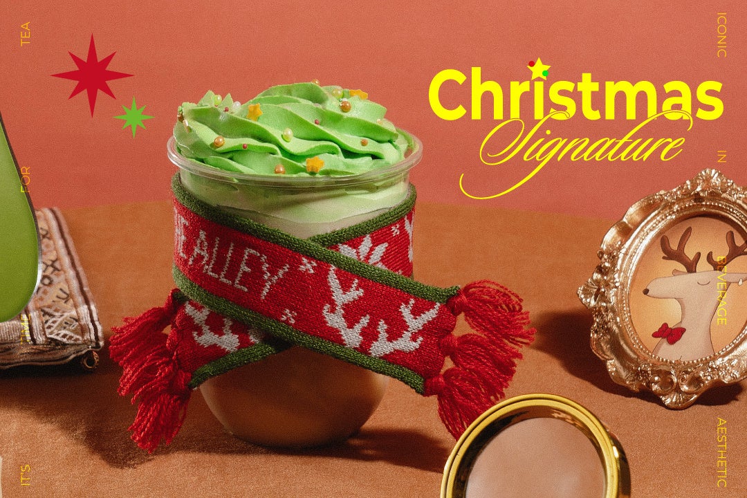 キュートな⾒た⽬がクリスマス気分を盛り上げる!〝Xmasリースのブリュレミルクティー〟がお茶に恋をする本格派ティー ストアTHE ALLEYから、12月1日(金)より登場致します!