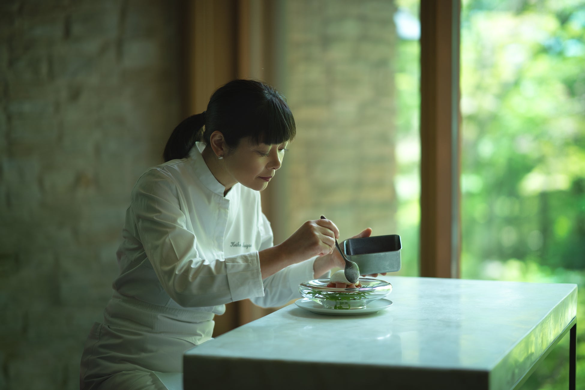 2021年夏誕生した『クレソンリバーサイドストーリー旧軽井沢』は、幻想的な森の中にたたずむレストラン。森の風に吹かれ 川のせせらぎや小鳥のさえずりに耳をかたむけながら、地元長野県食材をふんだんに使った軽井沢キュイジーヌを味わっていただだく、旧軽井沢だから体験できる豊かな時間と食の提供を目指しています。地元の方々や別荘客はもちろん 遠方から足を運ぶ著名人も数多く、併設パティスリーではソムリエが自ら開発した独自のドリンクやアルコール、パティシエ自慢の焼き菓子もテイクアウトいただけます。