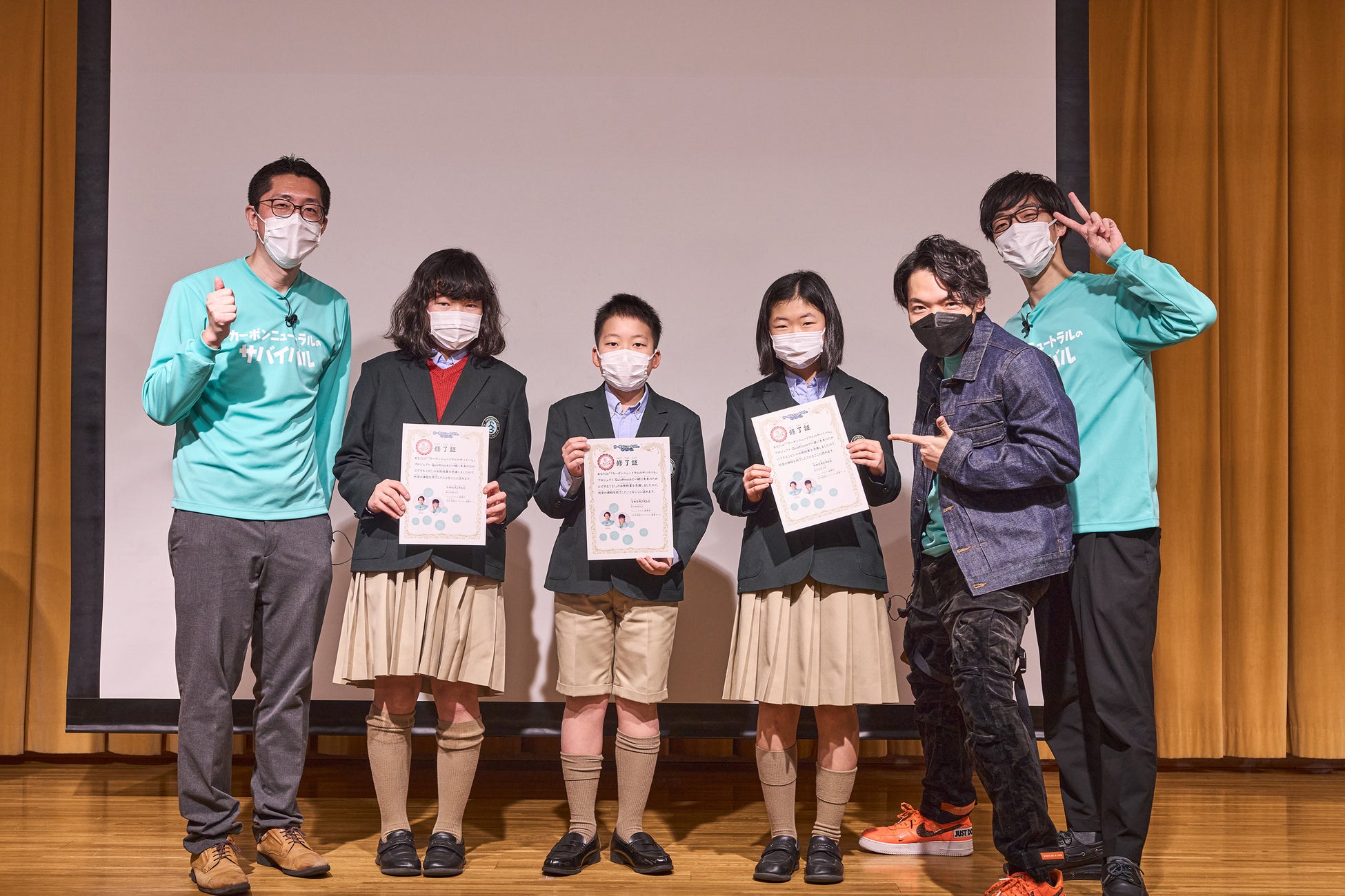 授業の最後には、子どもたちからQuizKnockへの質問コーナーがありました。「幼少期(の環境問題)はどうでしたか」という質問には伊沢さんが、「自分が子どもの頃は、カーボンニュートラルという言葉自体が無かった。僕たち以上にみんなの方が、環境に関する知識が多いので、世の中を良くしていってほしい」と答えました。