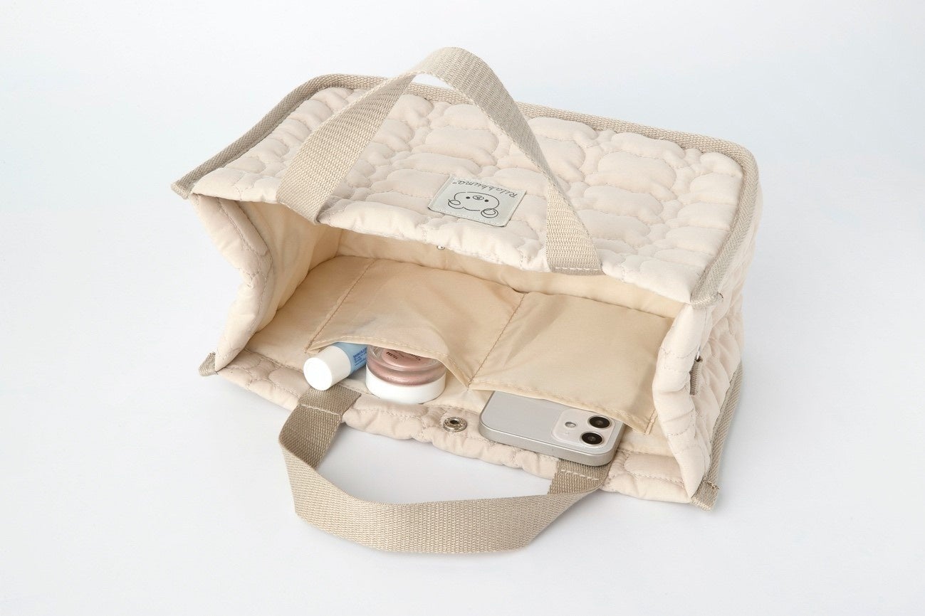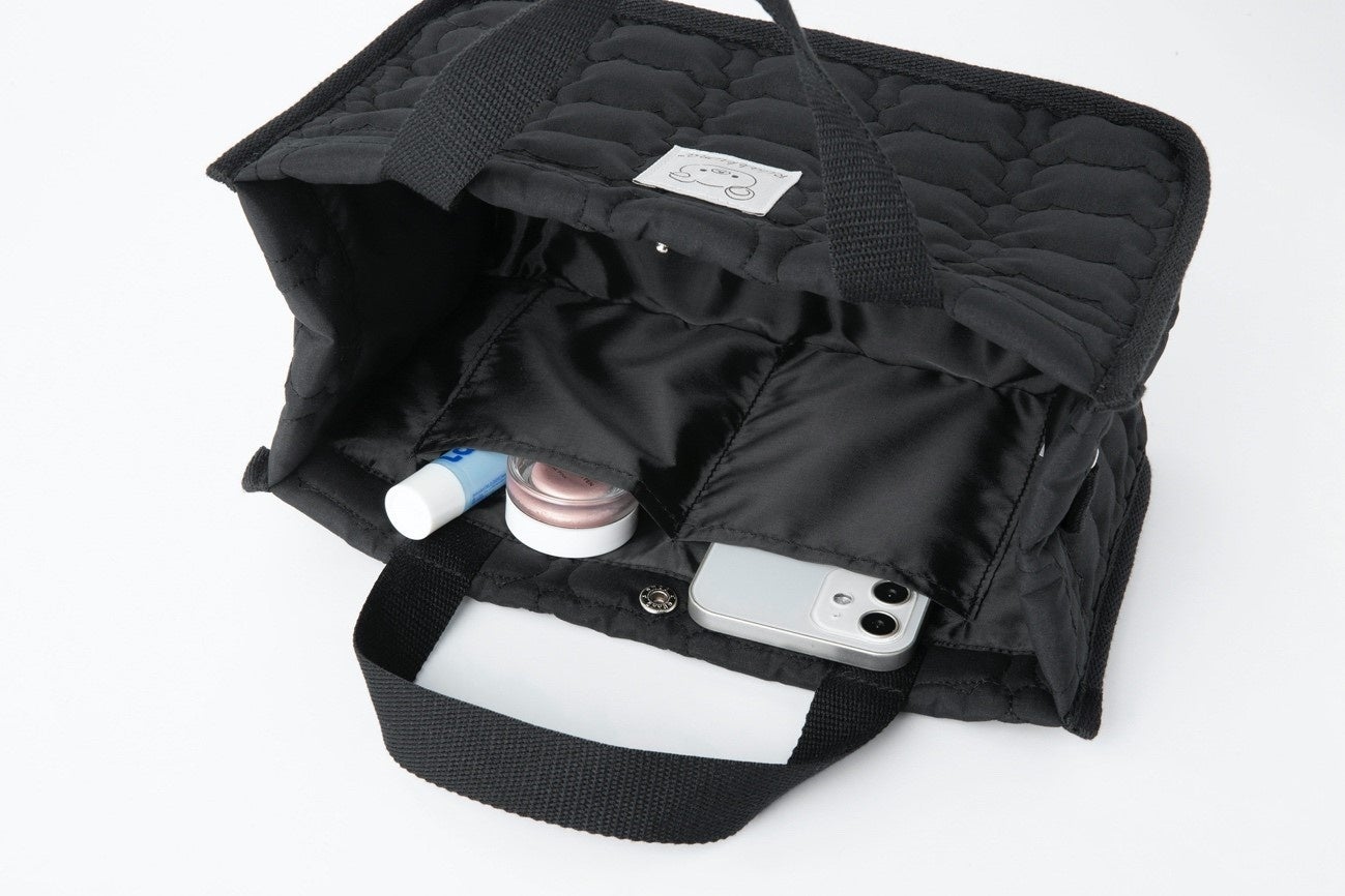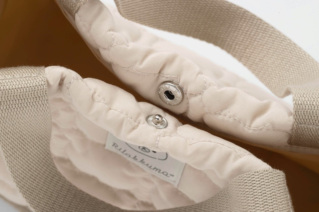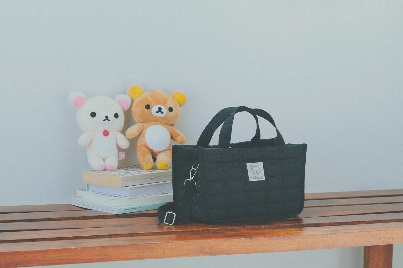 スペシャルアイテムは、ふわふわの手ざわりがこれからの季節にぴったりのキルティングバッグ。キュートなリラックマ柄のキルティング生地にリラックマのフェイスモチーフのタグをオン。秋冬のコーディネートに合わせやすいデザインに仕上げました。