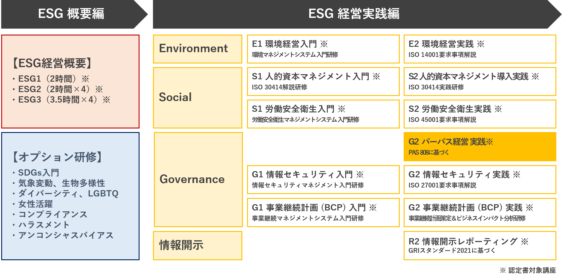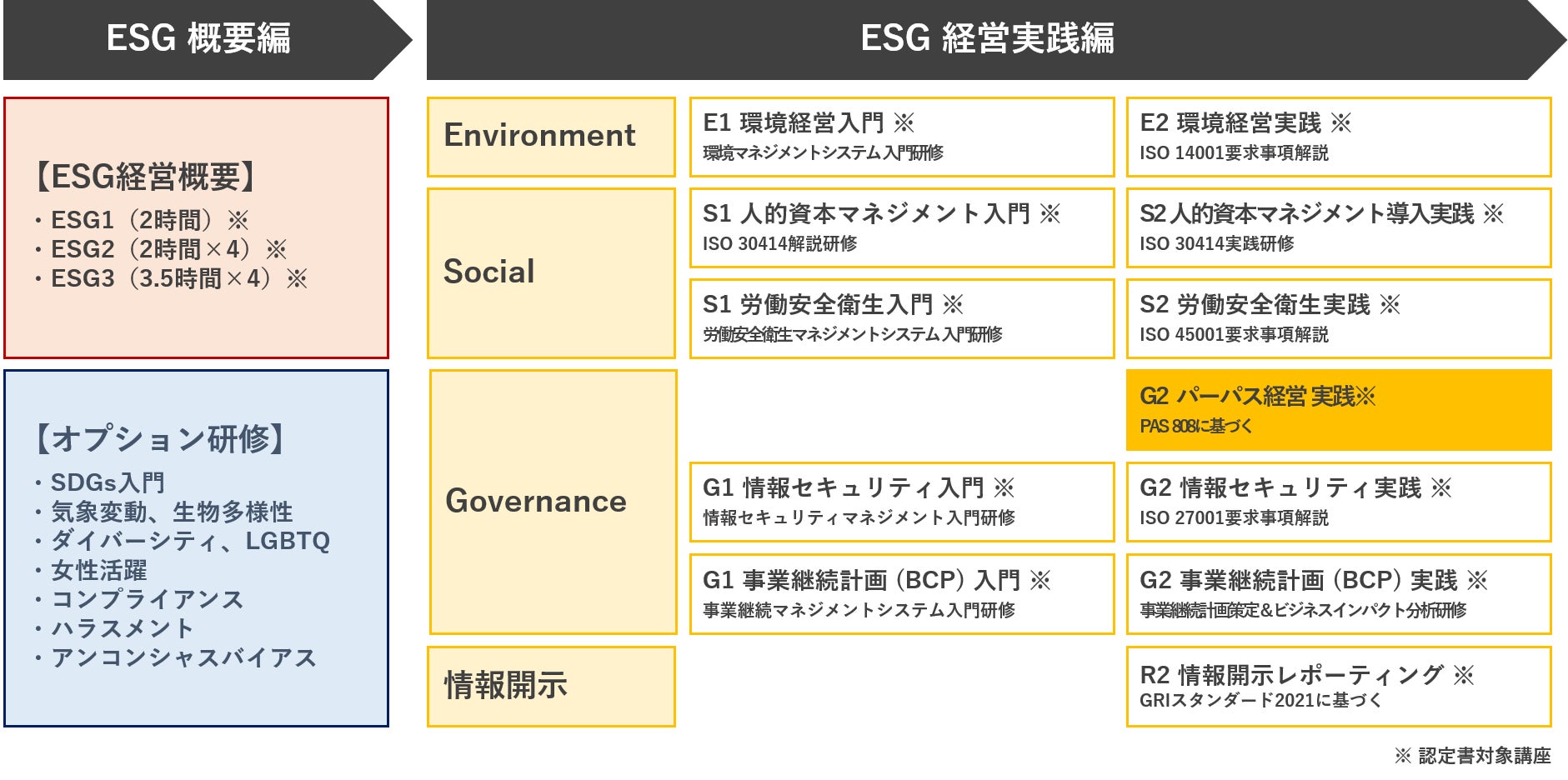 なお、「ESG経営実践編」においてパーパスに基づく組織構築とその目的に向けたフレームワークを学ぶ「パーパス経営 実践」は、国際規格「PAS 808」(※1)に準拠した、世界でも初めての講座(※2)となります。