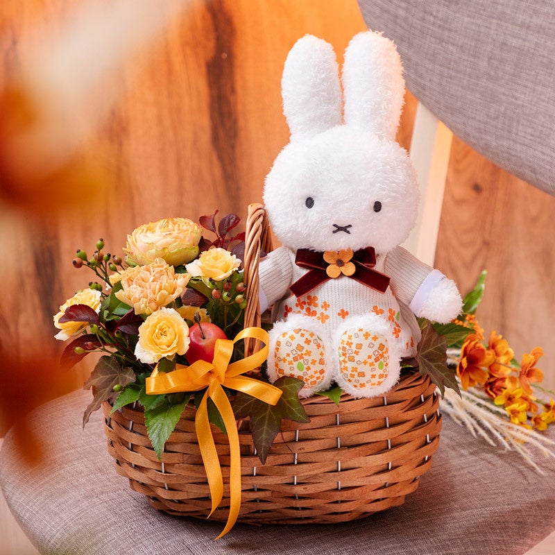 人気絵本シリーズミッフィーのお花屋さん「フラワーミッフィー」より、大人気の「着せかえほわほわぬいぐるみ」とセットになった秋を楽しむフラワーアレンジメント商品が2種登場