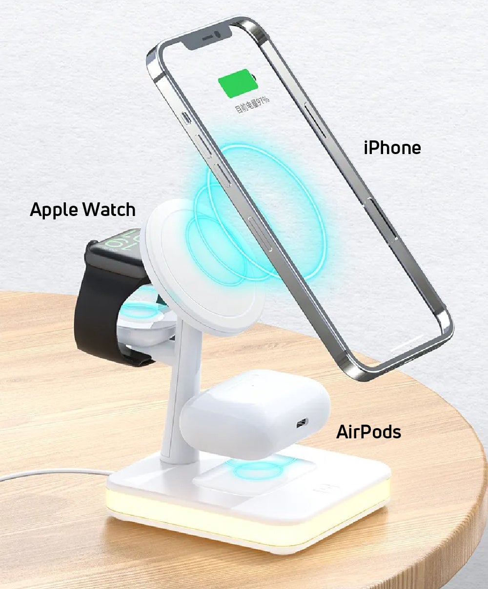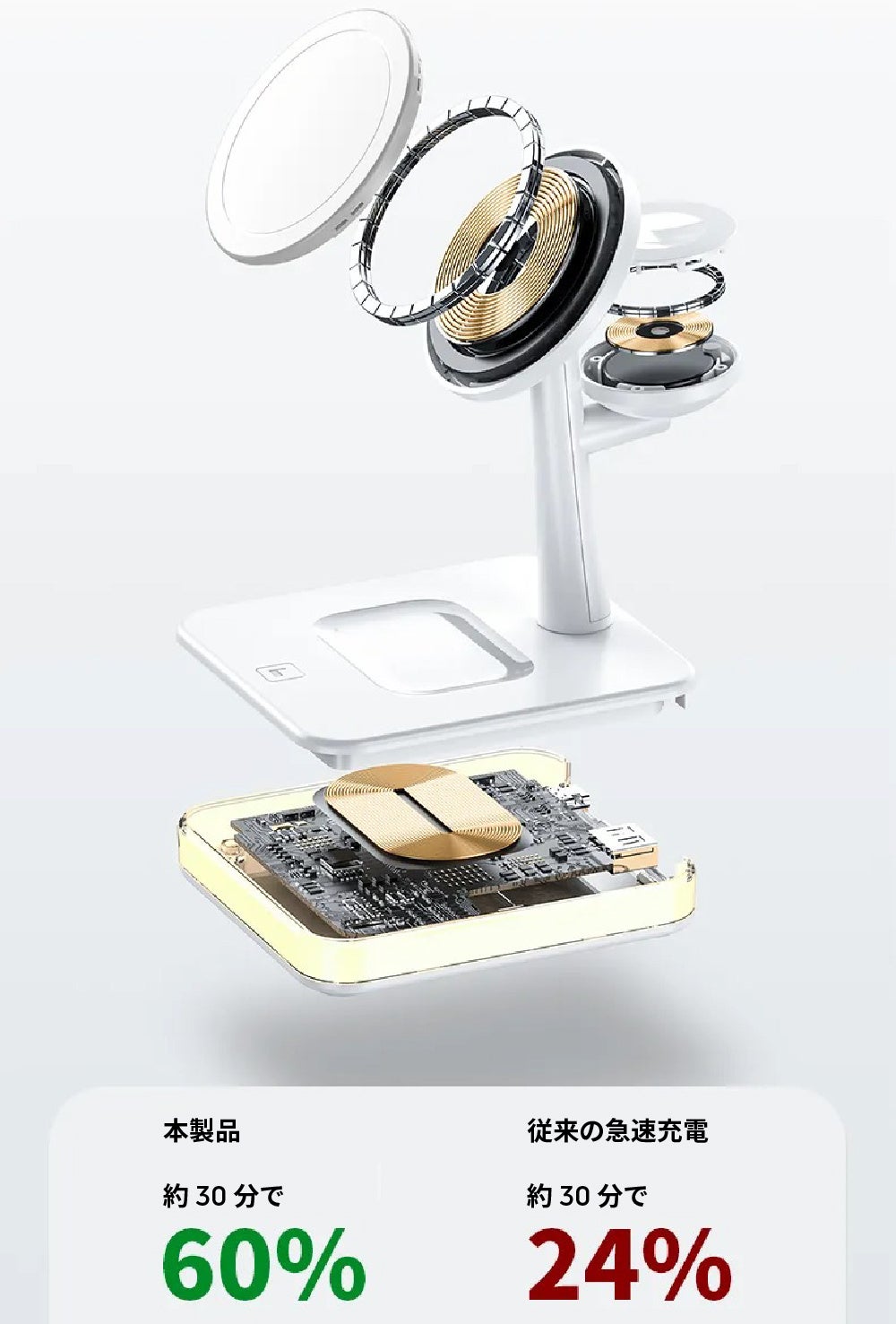 ●MagSafe対応、各デバイスに合わせて安定した充電、iPhoneはマグネット式充電で最大15W急速充電