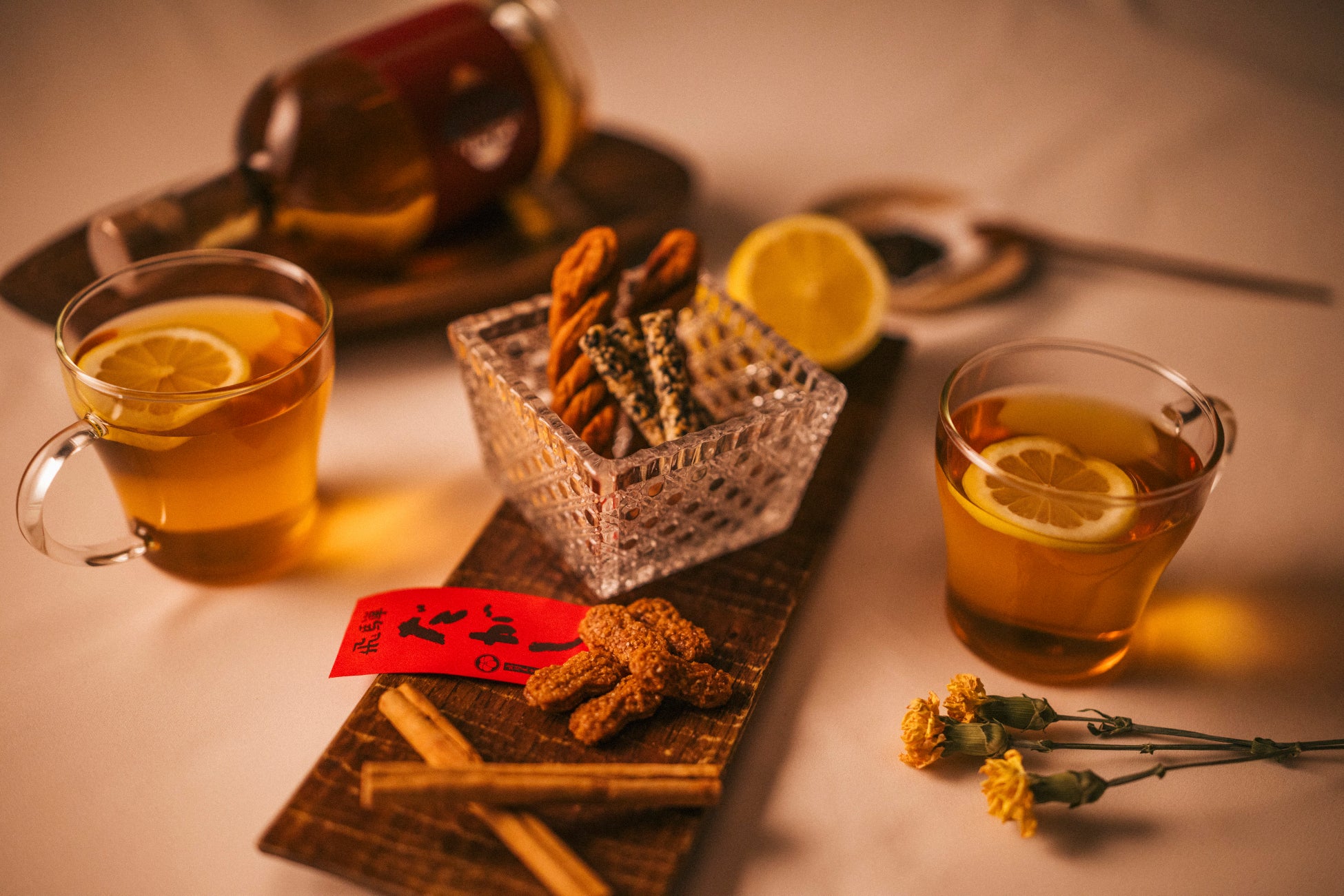かまくら内の特等席では、ご当地の飲み物とお菓子を提供します。飲み物は、奥飛騨温泉郷の温泉で発酵させた「飛騨紅茶」に、飛騨高山蒸留所のウィスキーを加えた「ホットウィスティー」です。温かい紅茶とウィスキーの香りで、体の芯から温まります。お菓子には、飛騨高山で親しまれてきた音羽屋の「飛騨駄菓子」を提供します。雪降る夜に、心安らぐひとときを楽しめます。