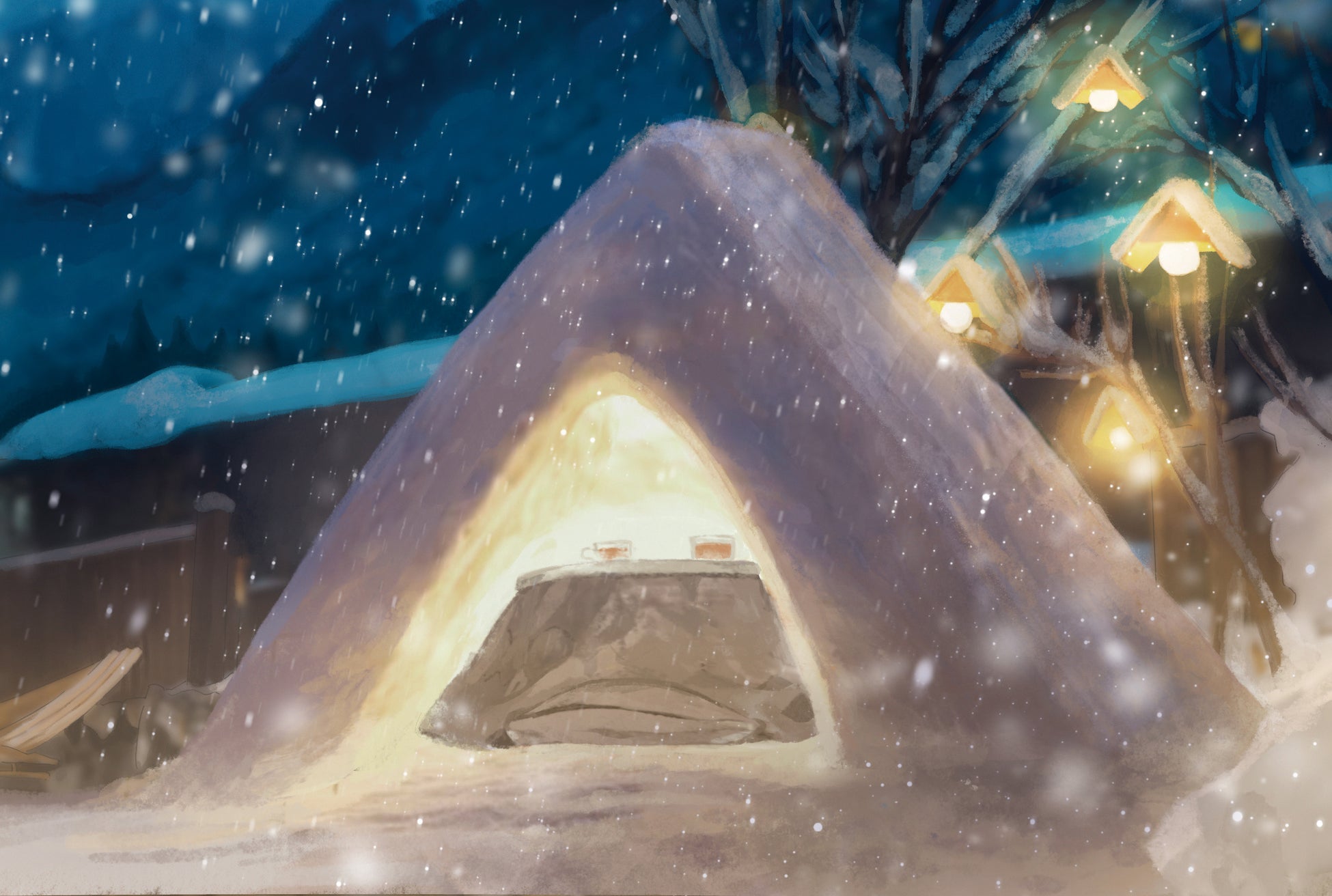 特徴2 合掌造りの屋根を思わせる「雪明かりかまくら」に、こたつなどを配備した特等席