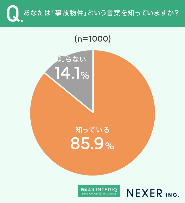 85.9%と8割以上の方が、「事故物件」という言葉を「知っている」と回答しています。