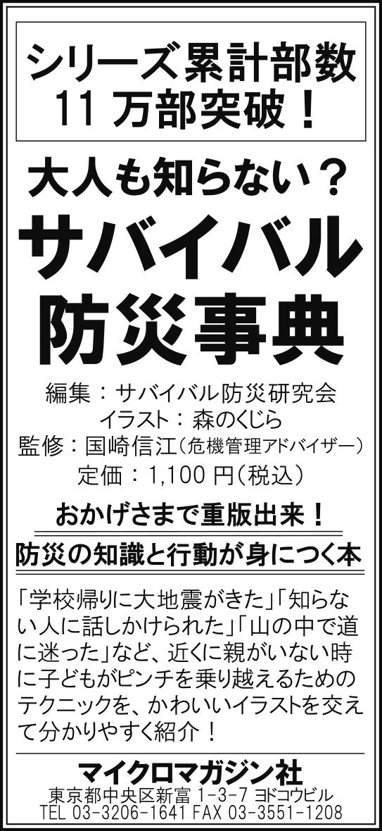 マイクロマガジン社(東京都中央区)は、『大人も知らない? サバイバル防災事典』を3月11日の福島民友新聞に掲載いたしました。