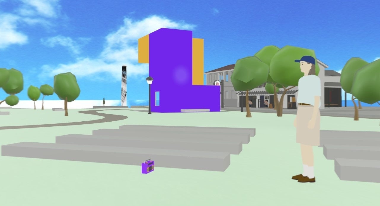 今回、このセンター広場内にラジカセが設置され、ラジカセをタップすると、ラジオの楽曲紹介調で再生されるという音楽体験が追加されました。1970年代から1990年代を中心に人気を集め、最近、レトロブームで注目を集めるラジカセをメタバース空間に置くことで、幅広い世代の方から興味を持って頂き、アーティストとの出会いの一助となればと考えています。