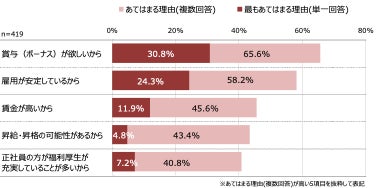 - 派遣社員を選んだ理由は「正社員を希望していたが、希望条件に合う正社員の仕事がなかったから」が前年比+10.3ptで最も増加【図3】