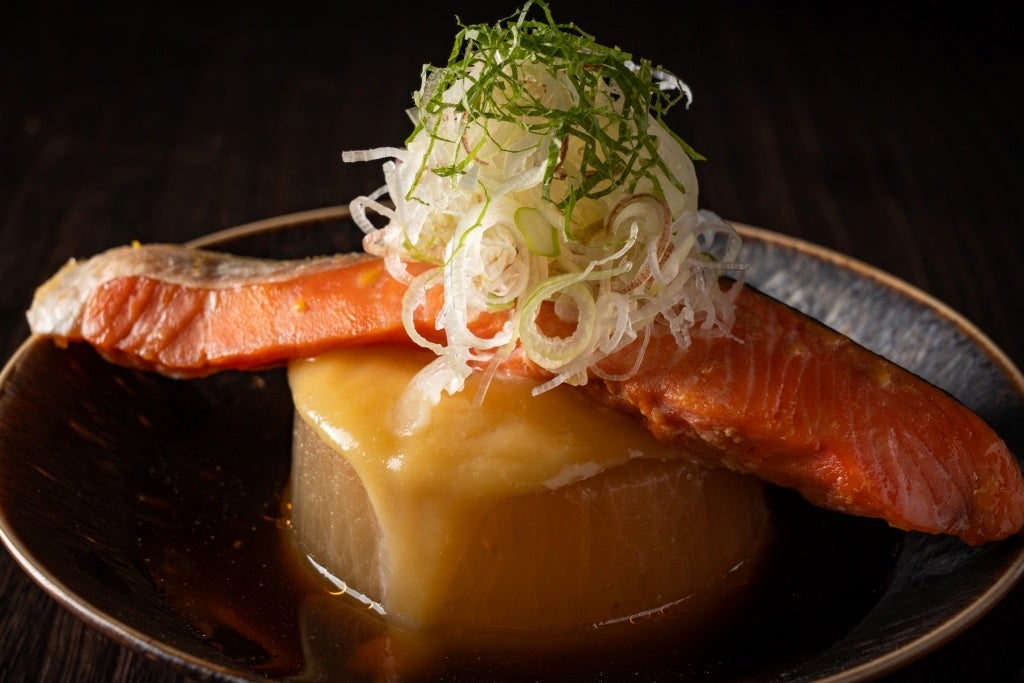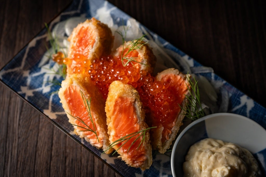 素材の持ち味を活かした「刺し」や「焼き」に加え、ひと手間・ひと工夫を加えた多彩な鮭料理をご用意しております。 煮る、揚げる、思わぬ素材との組み合わせなど、定番の枠にとどまらない独創的な一皿の数々をお楽しみください。