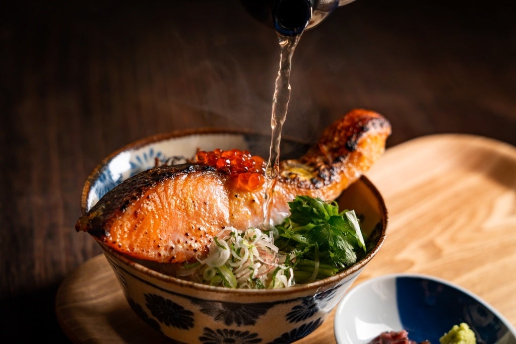 鮭と米は、日本人にとって馴染みもありご馳走感もある相性最高の組み合わせ。オーダーから30分ほどお時間をいただきじっくり炊き上げるストウブ飯や、大きな切り身と熱々のお茶で召し上がっていただくお茶漬けで、お腹をほっこり満たしてください。