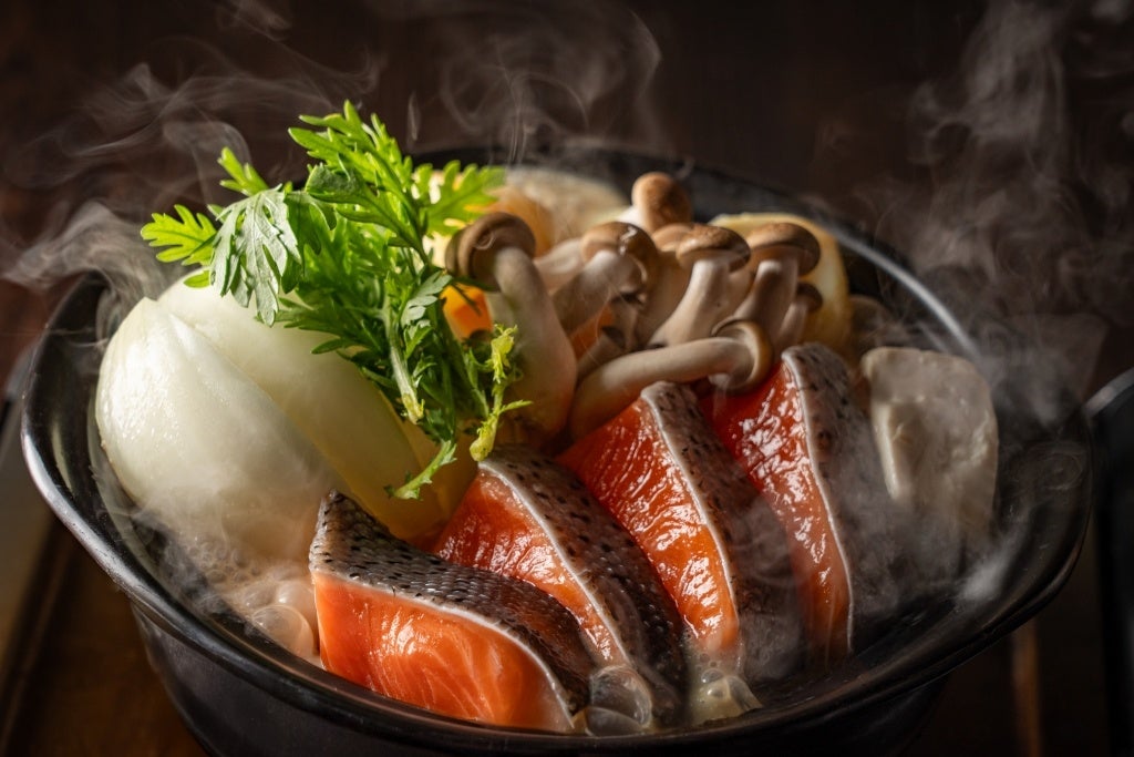 寒さが募るこれからの季節の風物詩と言えば鍋料理。SALMON‘Sでも鮭を主役にした名物鍋をご用意しています。まろやかな豆乳に、鮭を始めとした具材の出汁がしっかりと溶け込み、〆のリゾットや麺に至るまで、身も心も芯から温めてくれます。